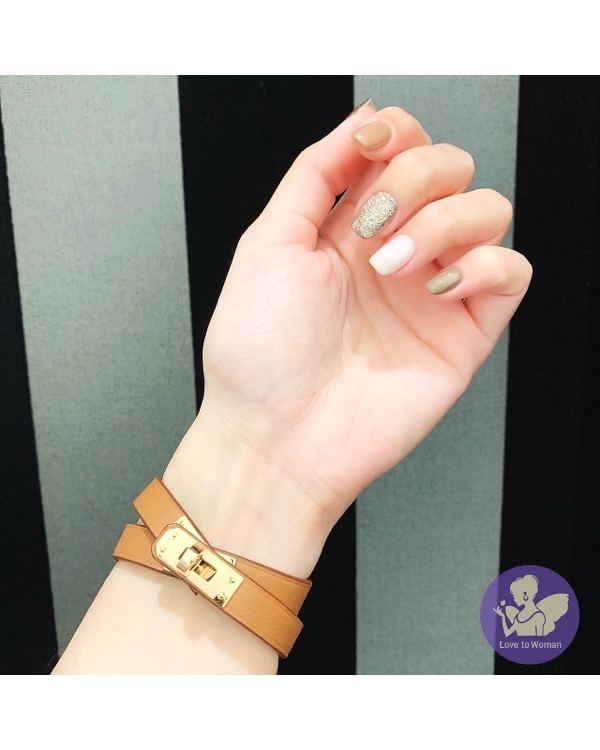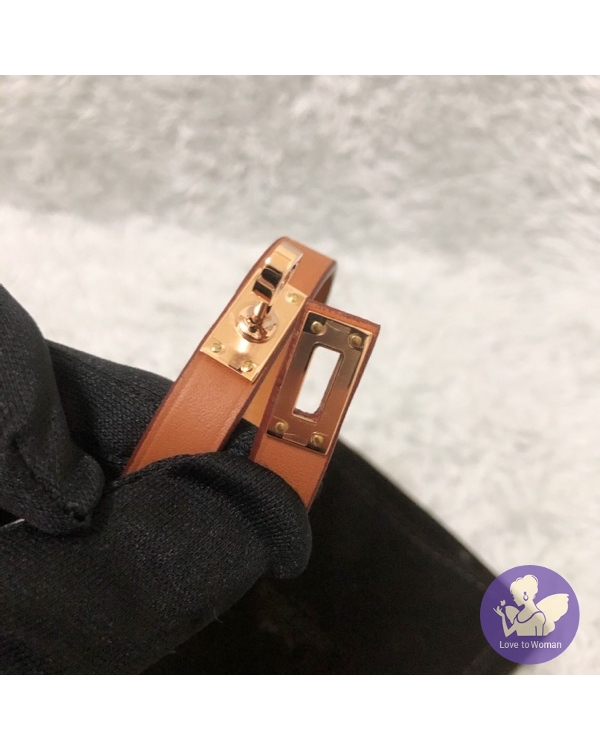 Swift小牛皮雙圈手鐲,搭配鍍玫瑰金迷你Kelly鎖扣。