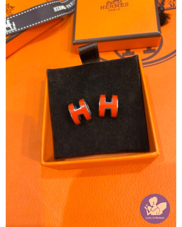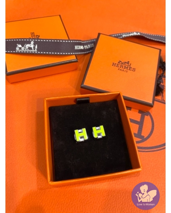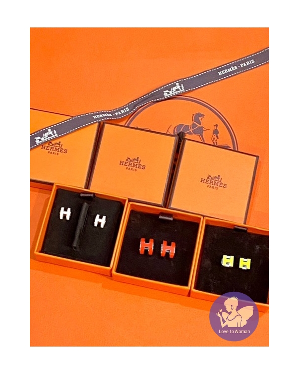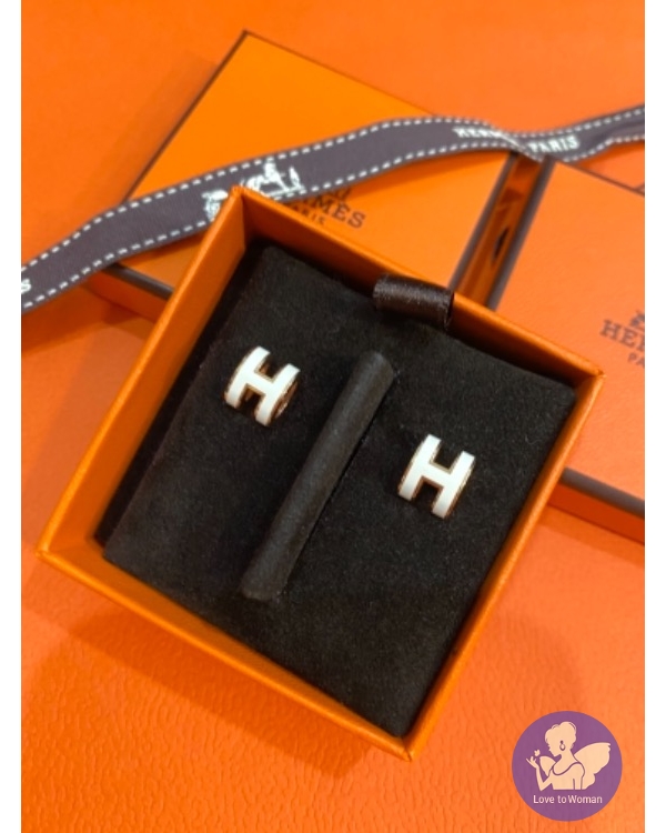1. Hermes mini pop橢圓琺瑯 #白色H耳環