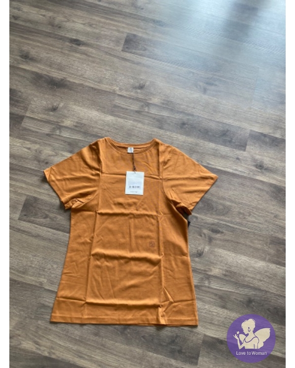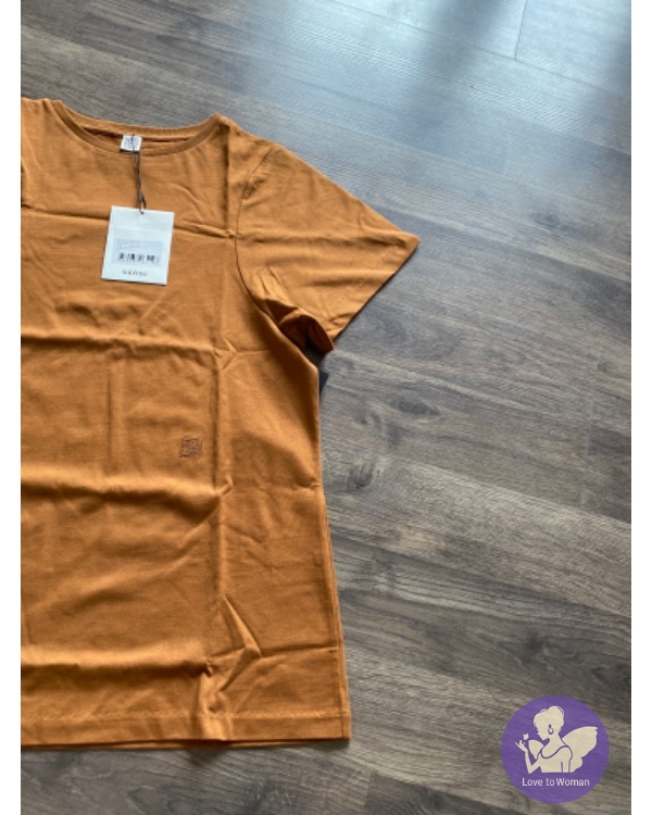 首頁 精品服飾 A001664 全新瑞典品牌Totême Espera焦糖棕色有機棉解構短袖上衣XS號