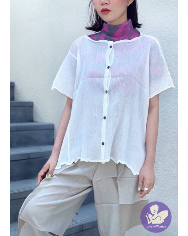 首頁 精品服飾 三宅一生Me issey miyake 黑、白縐織綁繩開襟排扣上衣 定