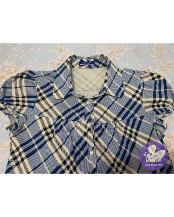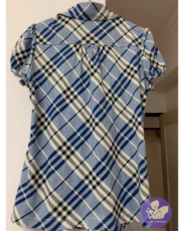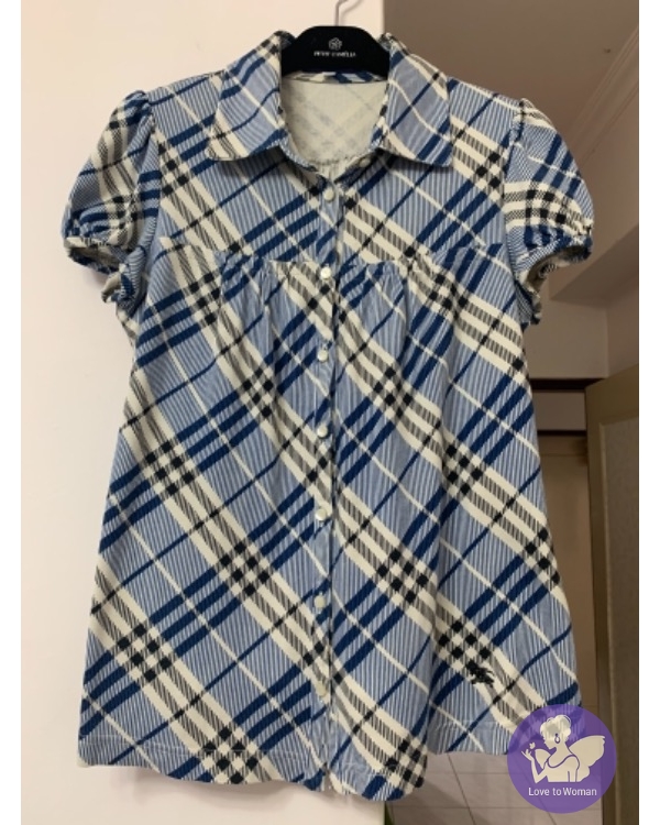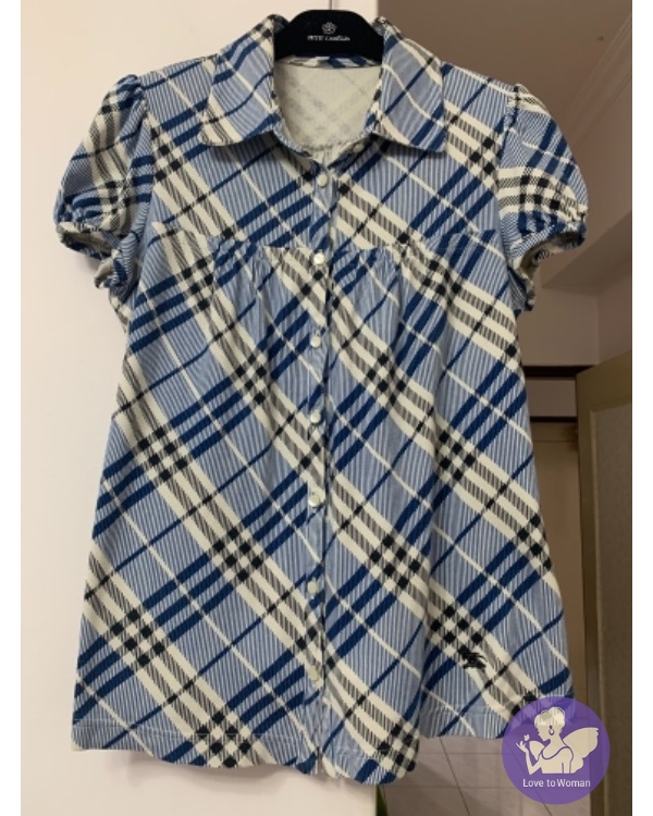 售Burberry格紋上衣,9新,size: 38號,衣長60cm,胸圍45cm,袖長17cm,經典的格紋,衣擺有刺繡Logo,袖子有一點泡泡袖公主風,購入價~已忘記,現甜價釋出給喜歡的姐妹,分享價1688(含運不議),喜歡的請喊我要,
