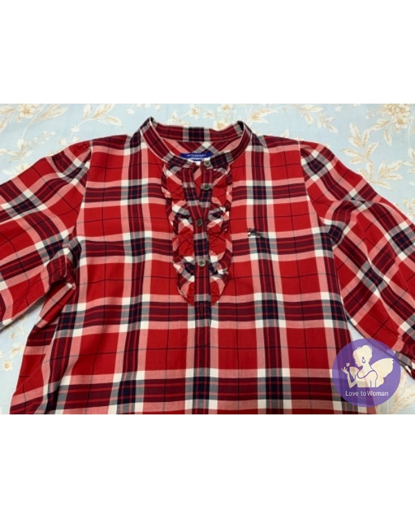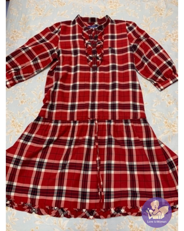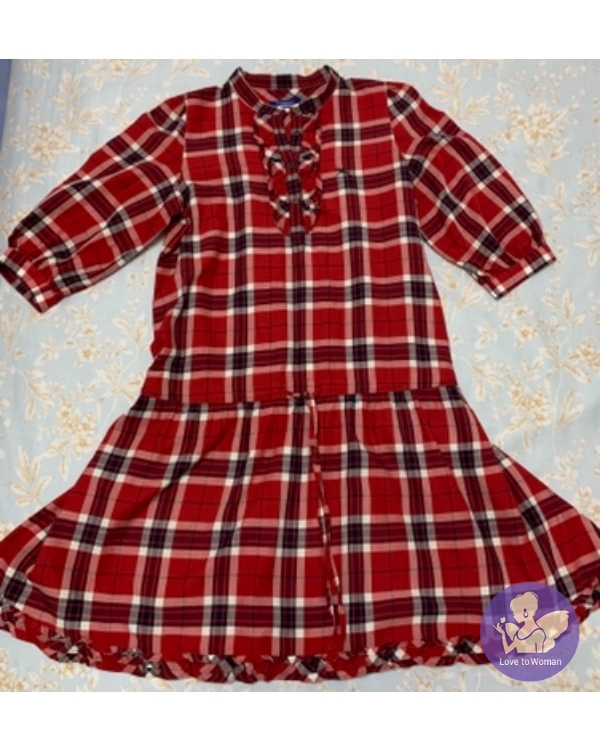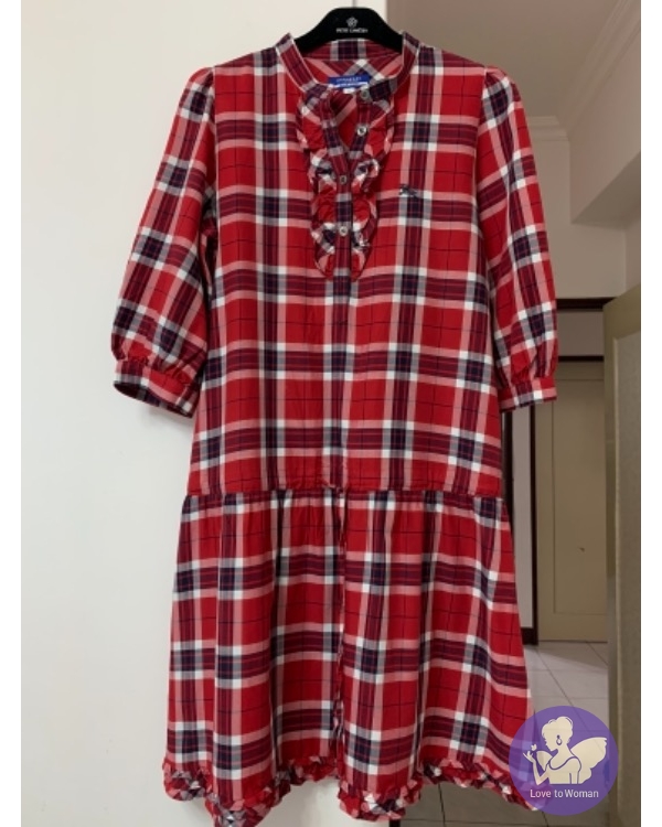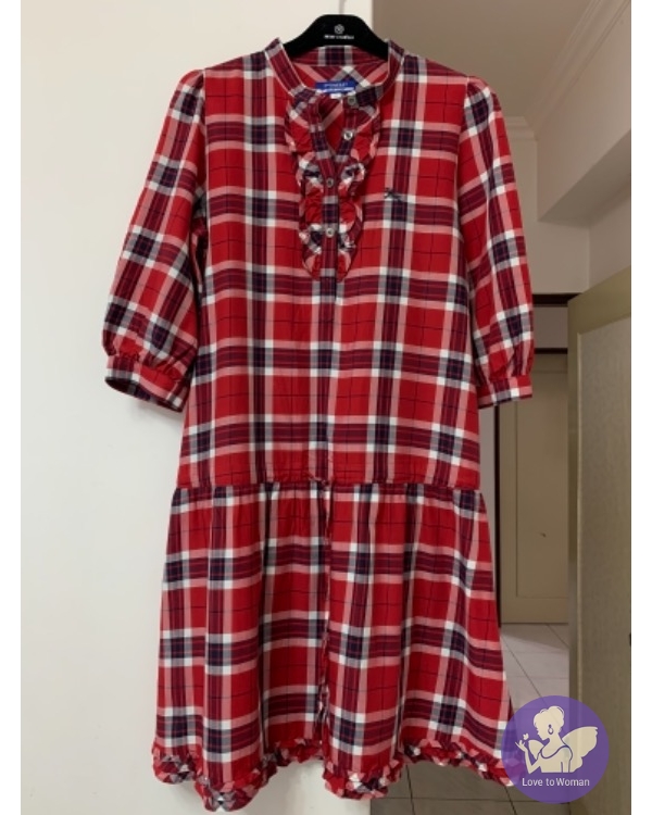 售Burberry暗紅色格紋洋裝,9新,size: 38號,衣長90cm,胸圍48cm,袖長41cm,經典的格紋,胸前有刺繡Logo,袖子有一點泡泡袖公主風,購入價~已忘記,現甜價釋出給喜歡的姐妹,分享價2988(含運不議),喜歡的請喊我要,
