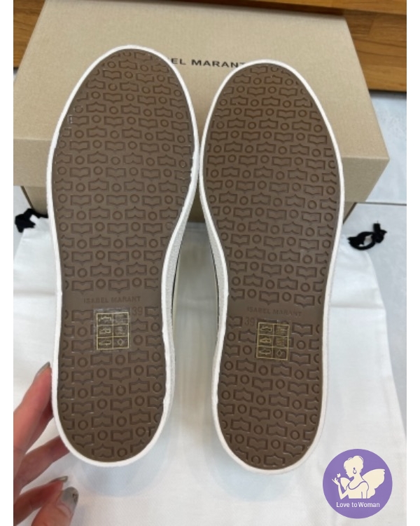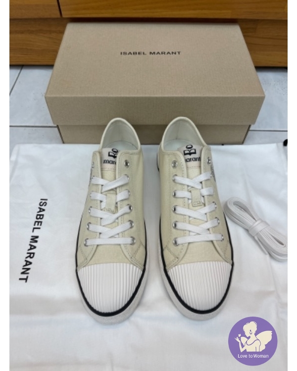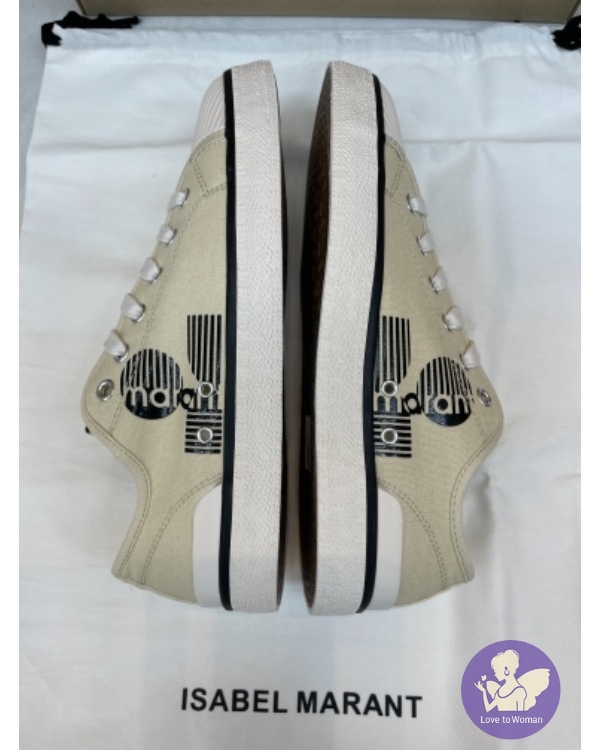 首頁 精品女鞋 售全新ISABEL MARANT 米色Logo圖騰帆布鞋