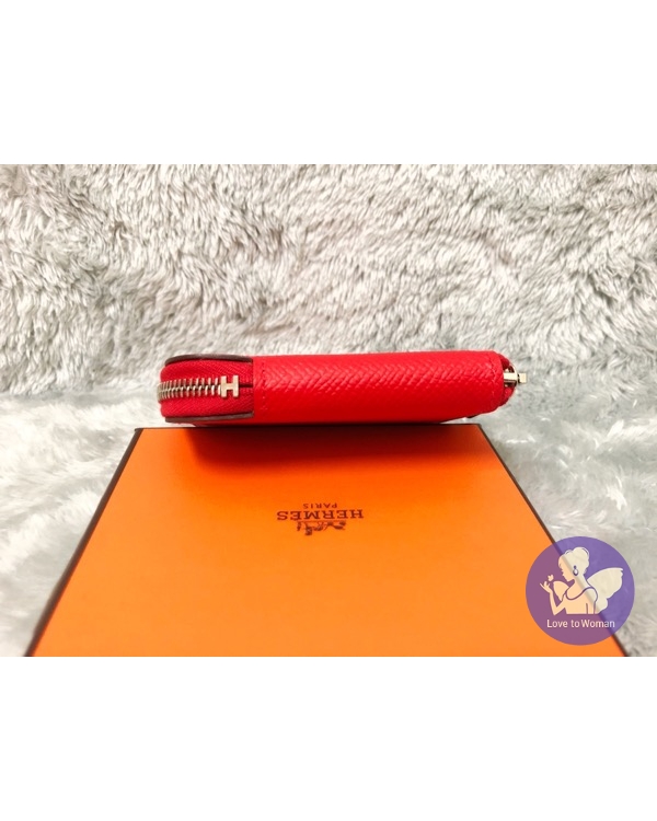 Hermes 愛馬仕 Silk in 經典 S3色Rouge coeur 愛心紅 Epsom牛皮 經典 拉鍊 絲巾零錢包 全新✨