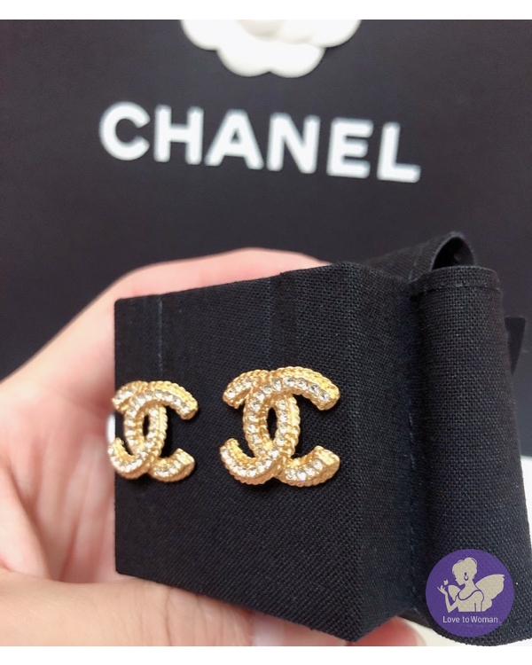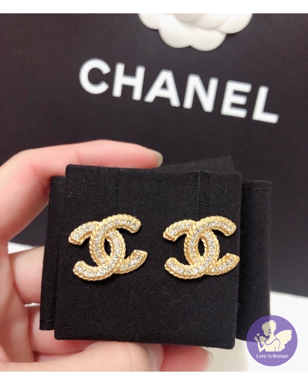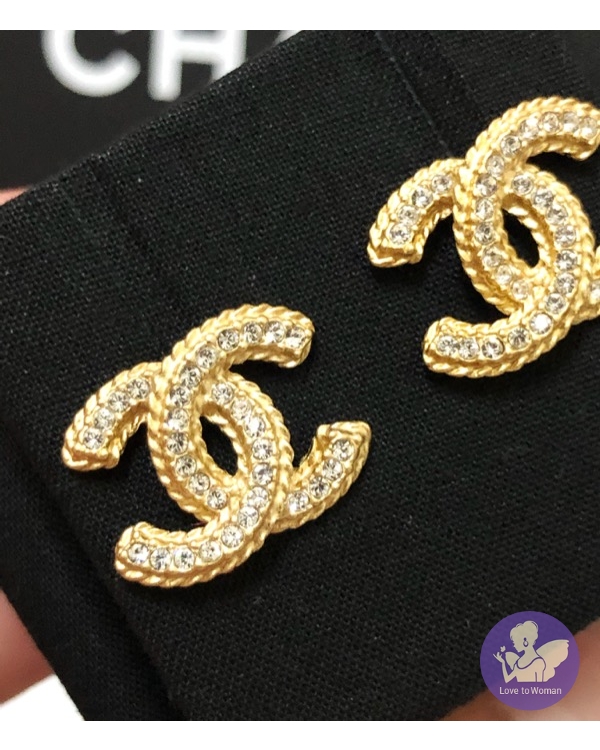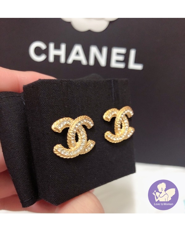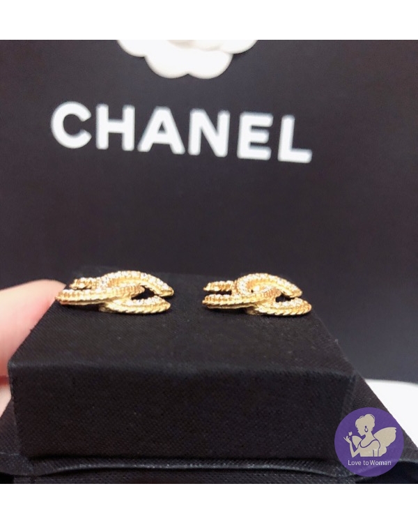 CHANEL 香奈兒 小香 2020春夏新款 霧面金色 麻花水鑽 雙C logo 穿式 針式耳環 全新