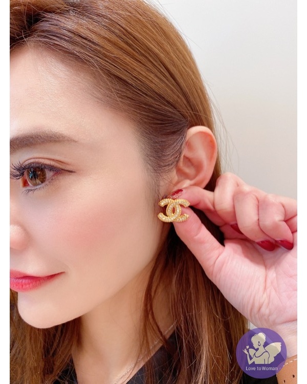 首頁 精品手錶 CHANEL 香奈兒 小香 2020春夏新款 霧面金色 麻花水鑽 雙C logo 穿式 針式耳環 全新