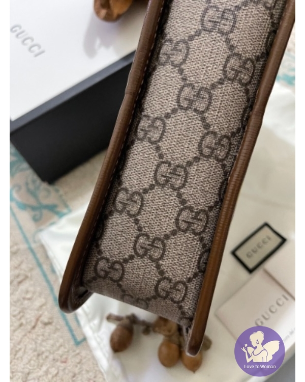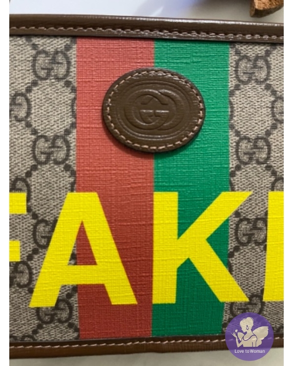 米色及烏木色GG Supreme帆布綴以織帶條紋及「Fake/Not」印花,此帆布屬環保物料