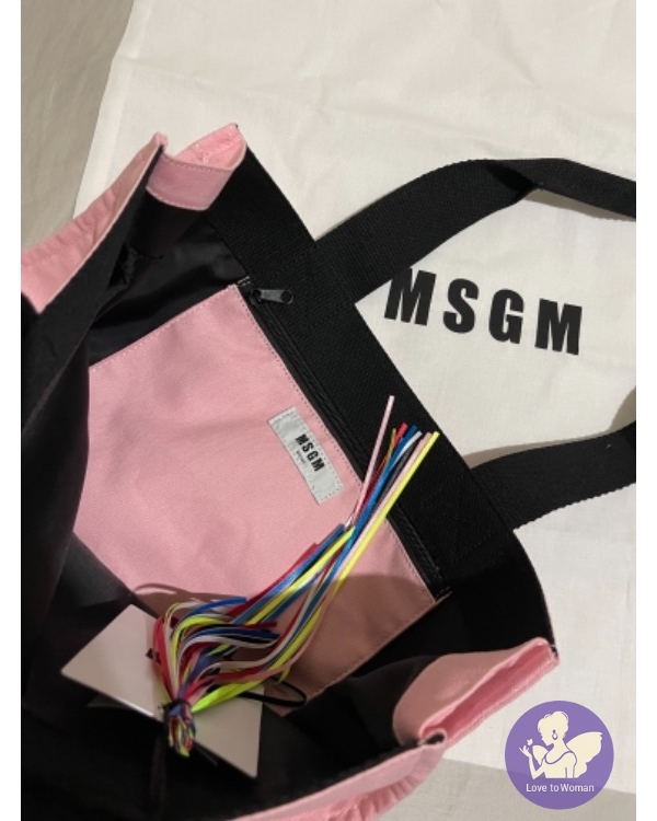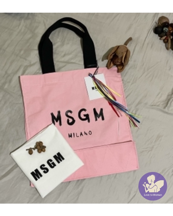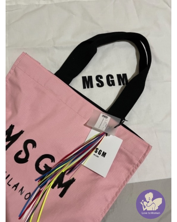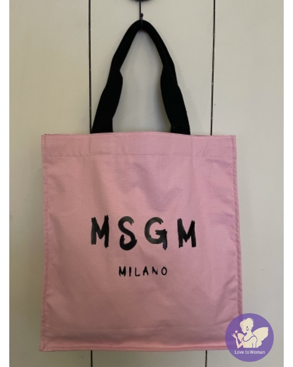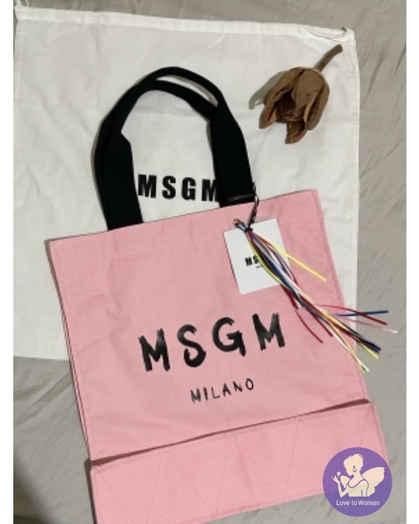 全新MSGM 黑色草寫logo 粉色Tote bag