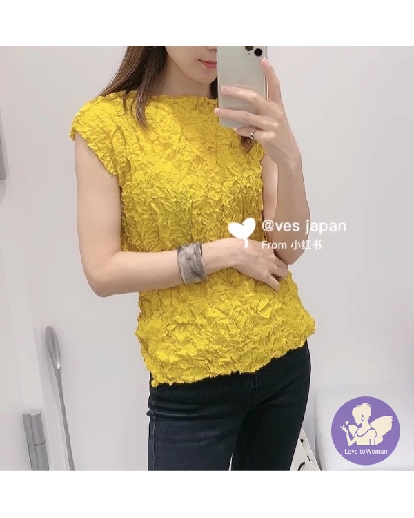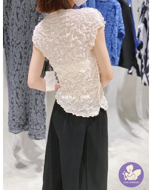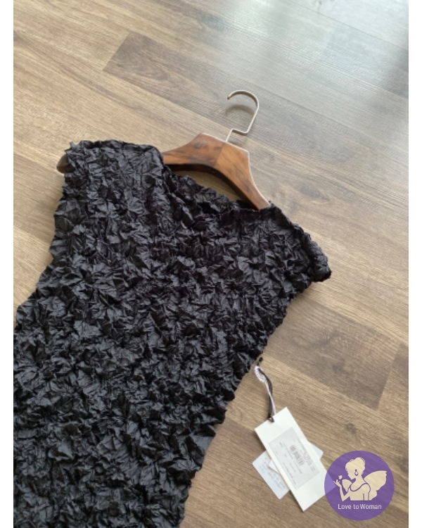 ​A001664 全新 me ISSEY MIYAKE 三宅一生 MERINGUE 皺褶黑色上衣