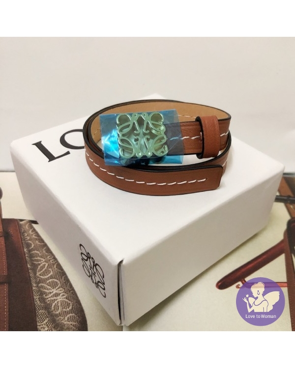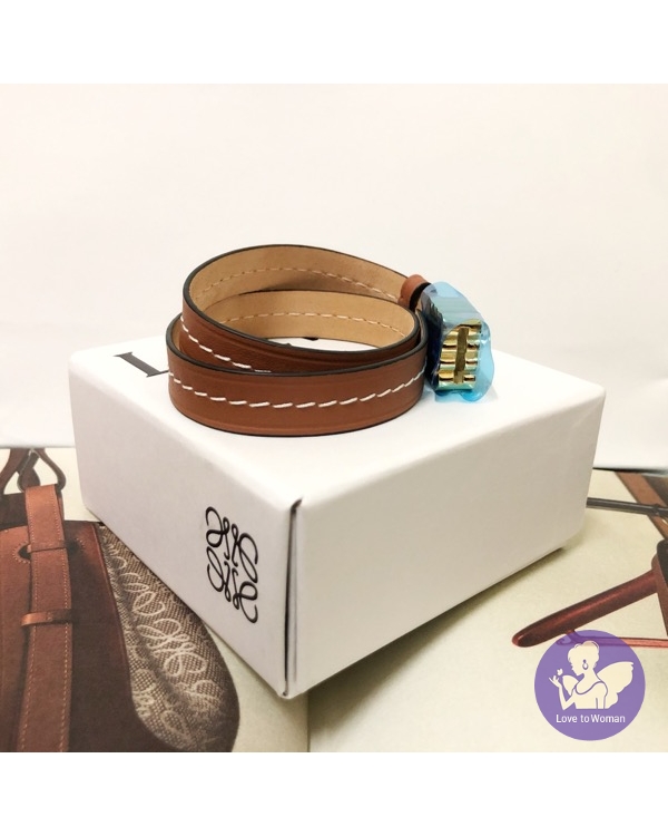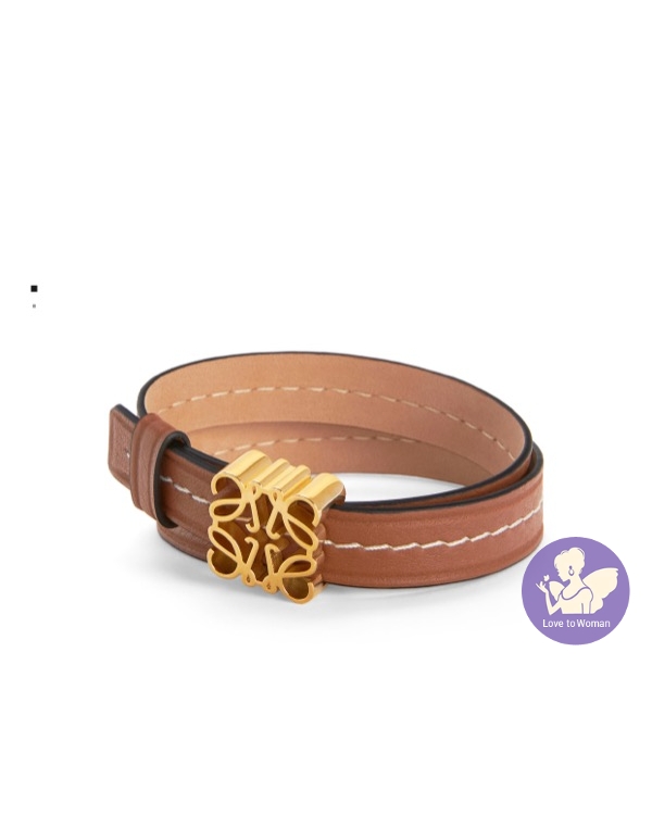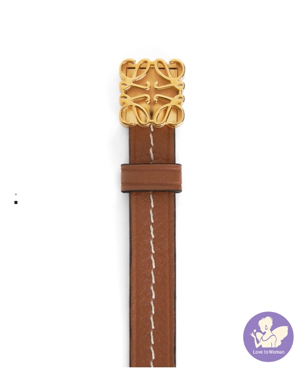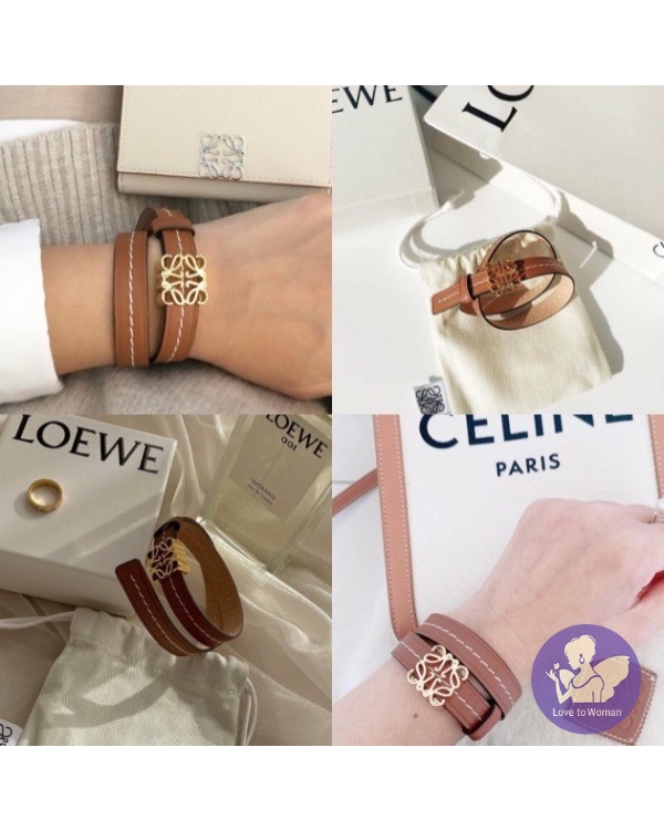 首頁 精品手錶 LOEWE 羅威 金色 logo Anagram 小牛皮棕色 配白線 雙圈 手環 全新✨