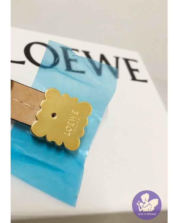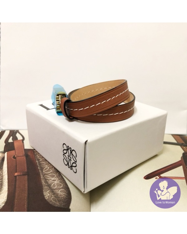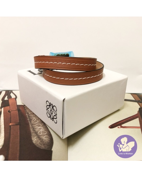 LOEWE 羅威 金色 logo Anagram 小牛皮棕色 配白線 雙圈 手環 全新✨
