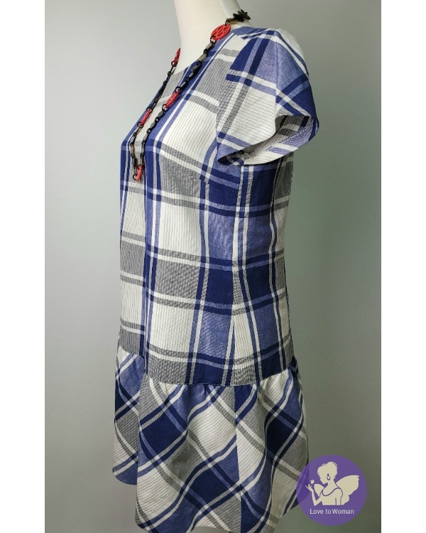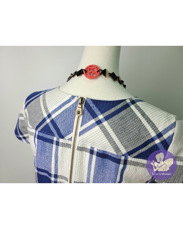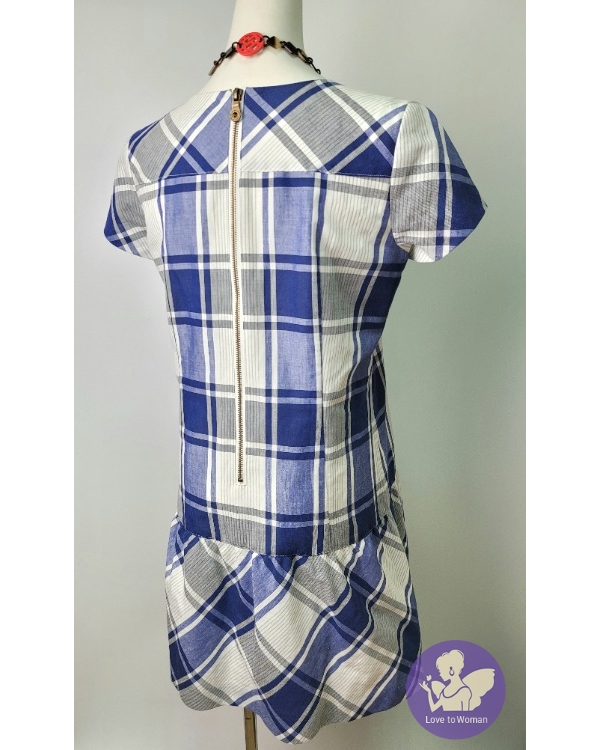 ~BURBERRY 極新極美 藍色白色條格A式拉鍊洋裝~38號