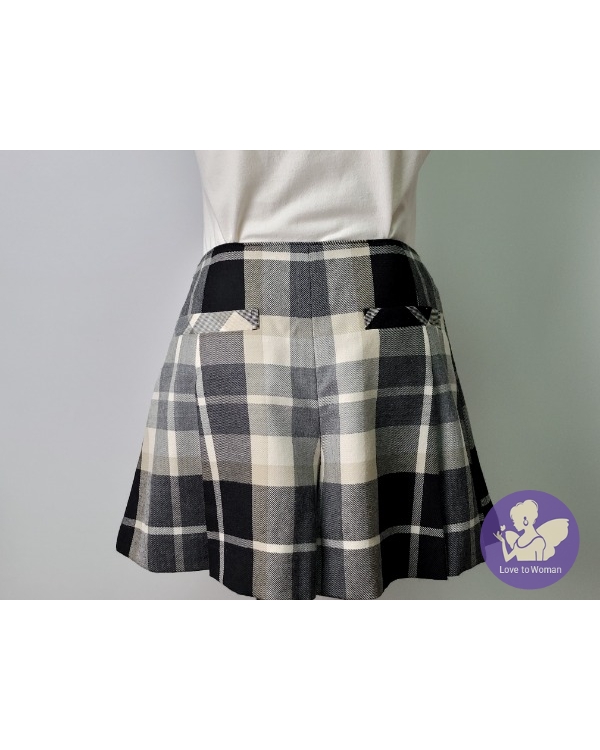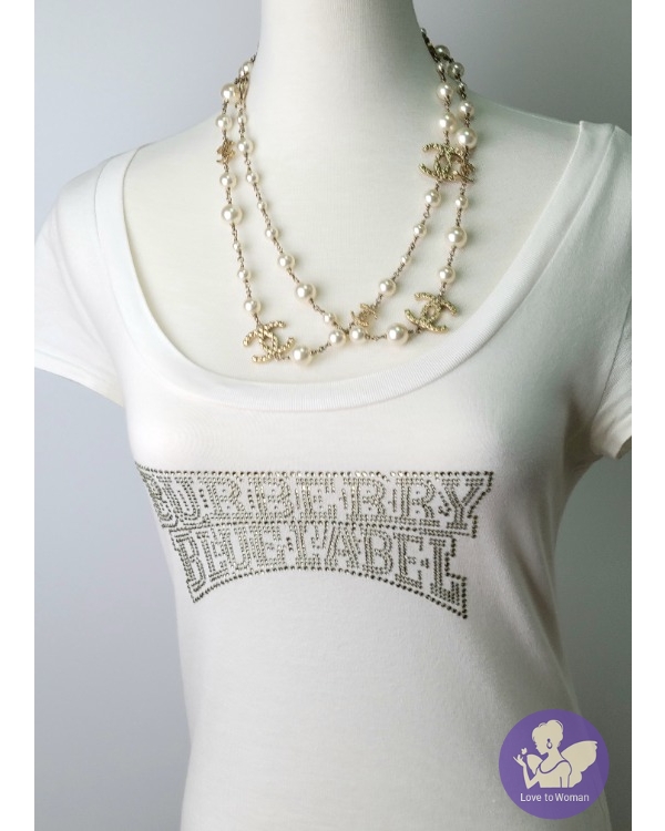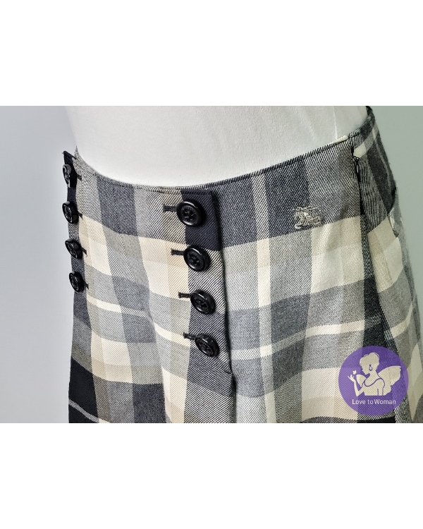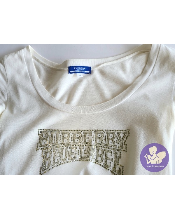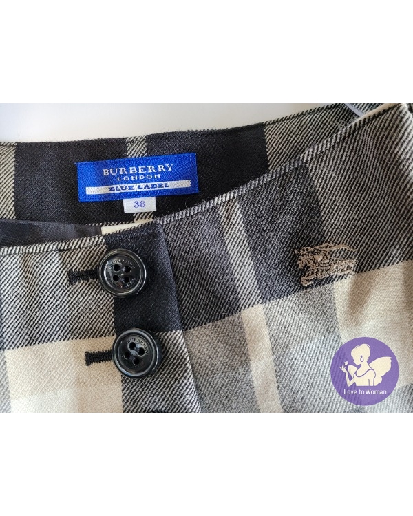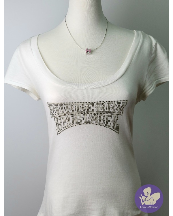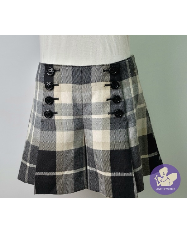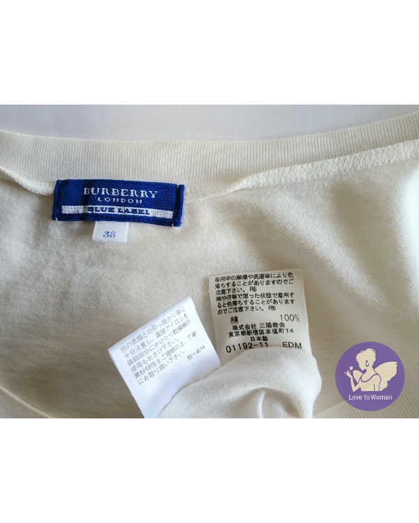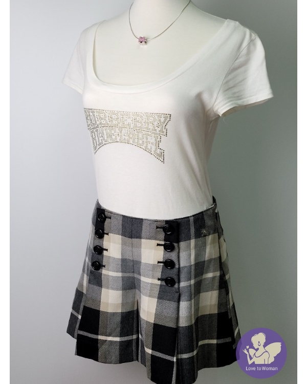~BURBERRY 極美 白色大圓領胸前LOGO上衣38號+格紋褲裙38號