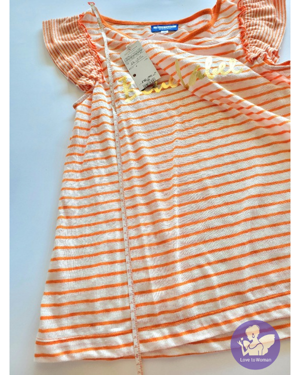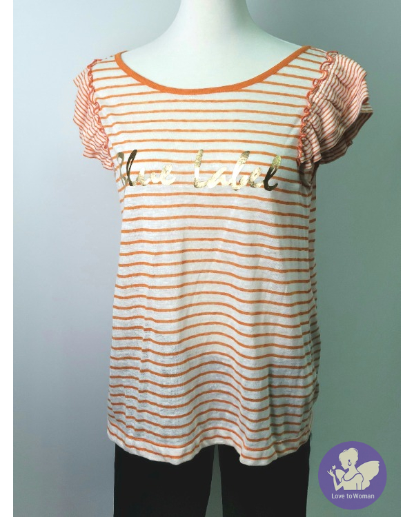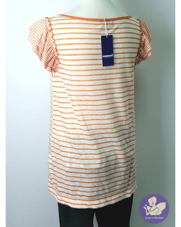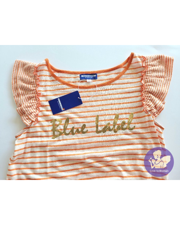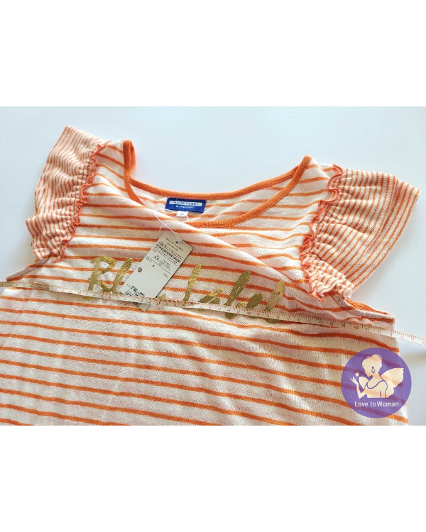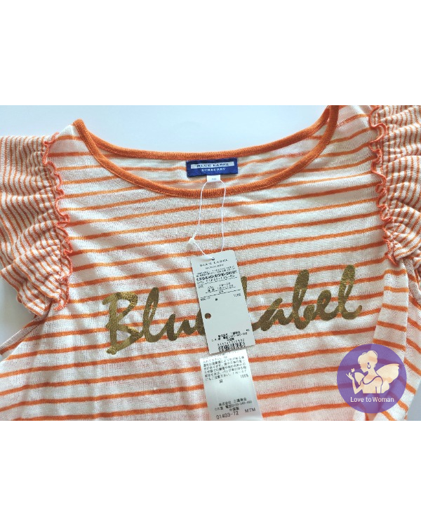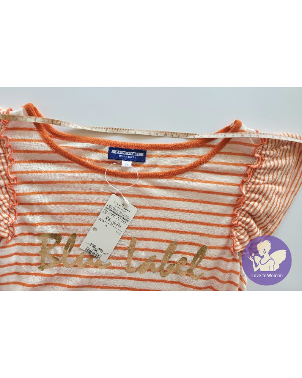 ~BURBERRYS Blue Label 全新(吊牌) 橘色+白色條紋荷葉拉褶袖上衣~38號