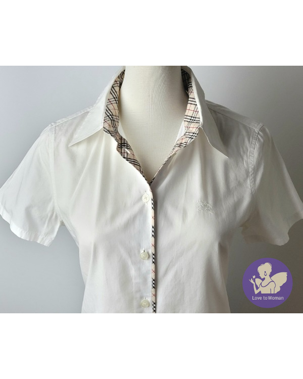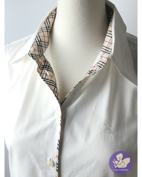 ~BURBERRYS 白色前襟經典格紋襯衫~38號