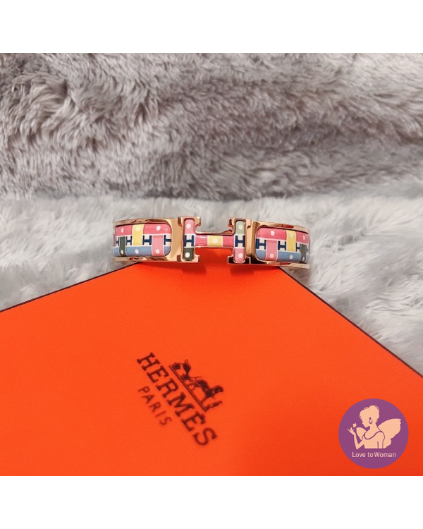 ​Hermès 愛馬仕 經典款 2021新款 Clic H Son du H bracelet 彩色可愛H琺瑯 手環 Album De Soie 尺寸PM 全新✨