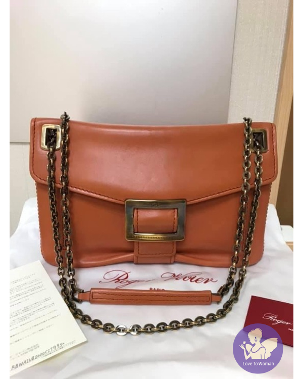 首頁 精品包包 ROGER VIVIER 焦糖色牛皮經典方珐瑯釦三用包