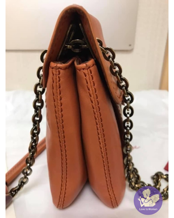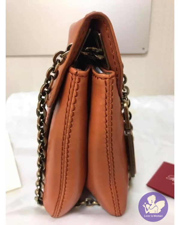 ROGER VIVIER 焦糖色牛皮經典方珐瑯釦三用包