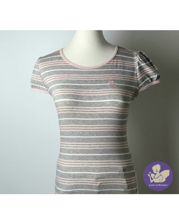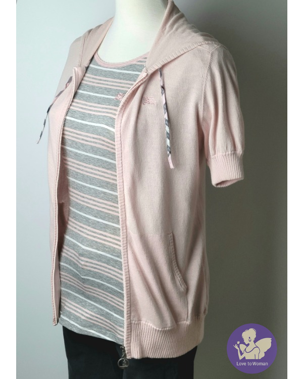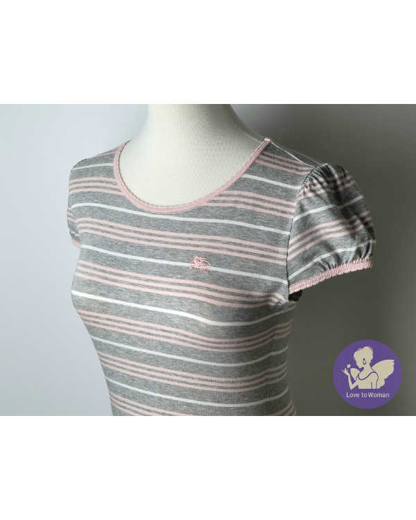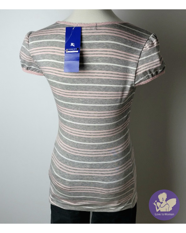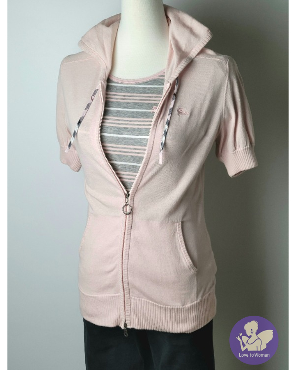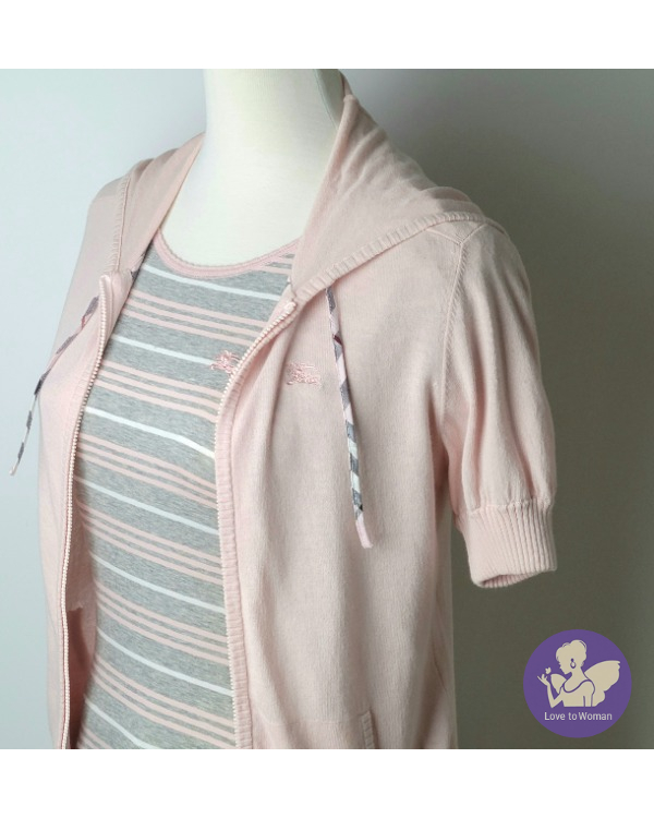 ~BURBERRY 粉色帽外套+全新粉灰條上衣 二件上衣