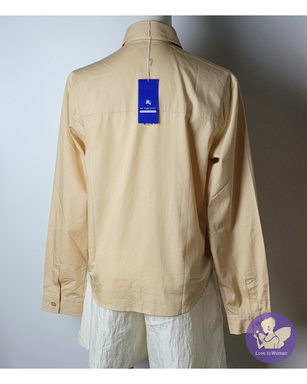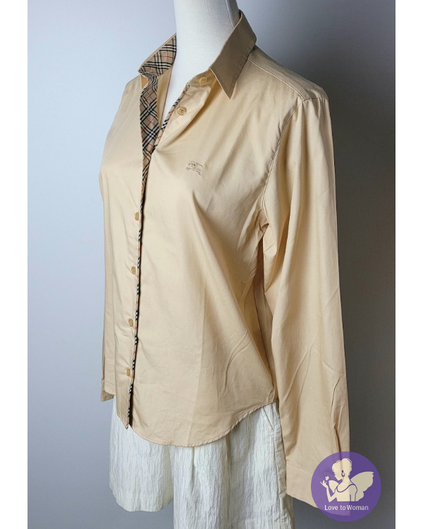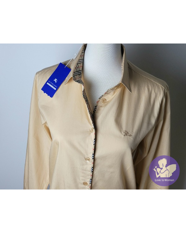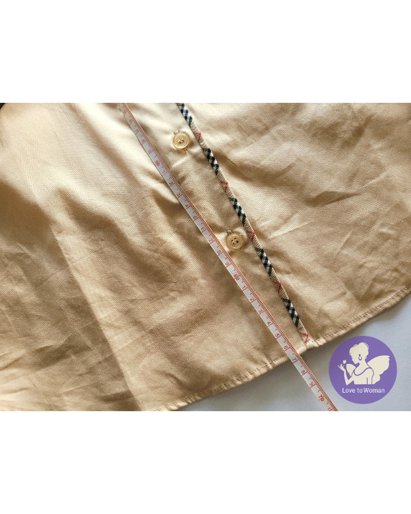 ~Burberry 全新.蜜駝色長袖駝格子滾邊襯衫~40號