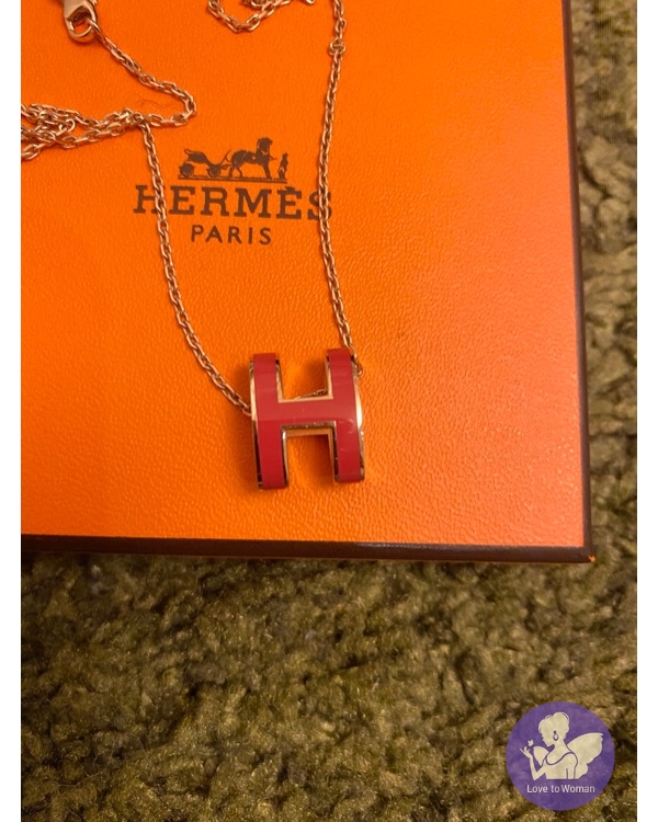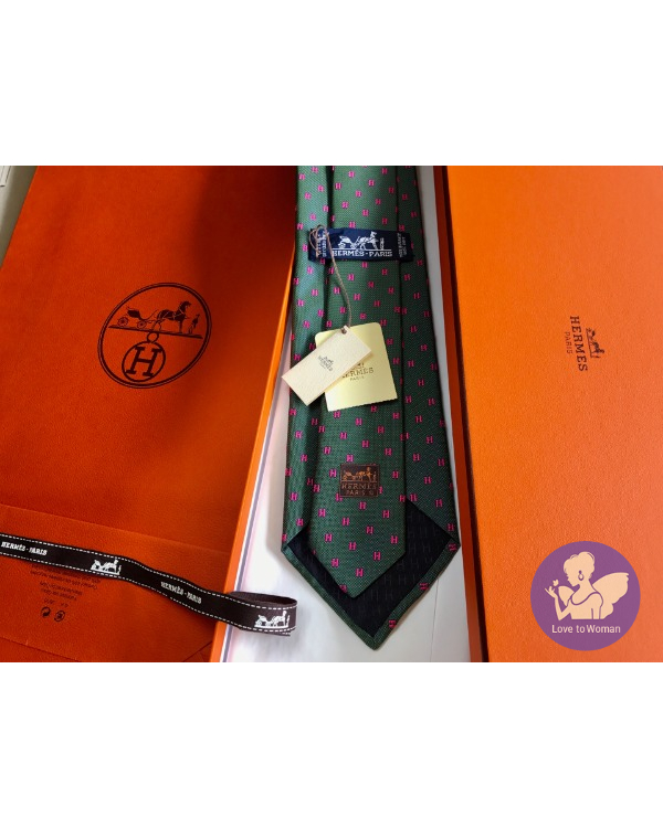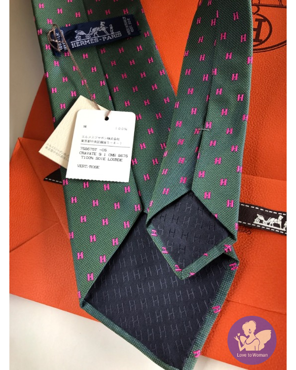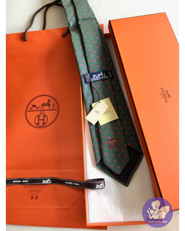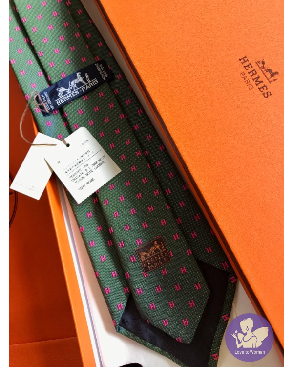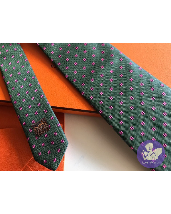 ~Hermes 附原廠盒.提袋 極新極美 桃粉H圖案領帶
