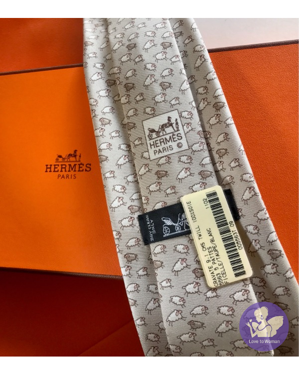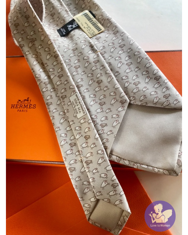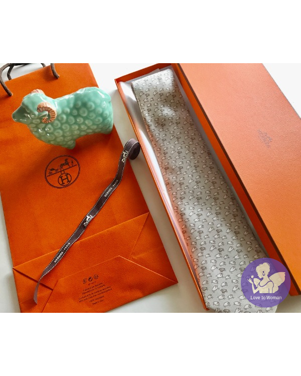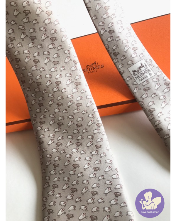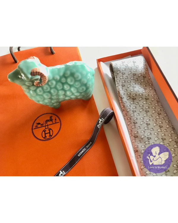 ~Hermes 附原廠盒.提袋 極新極美 綿羊圖案領帶