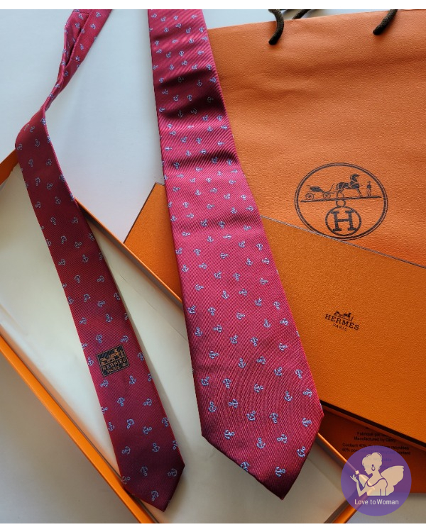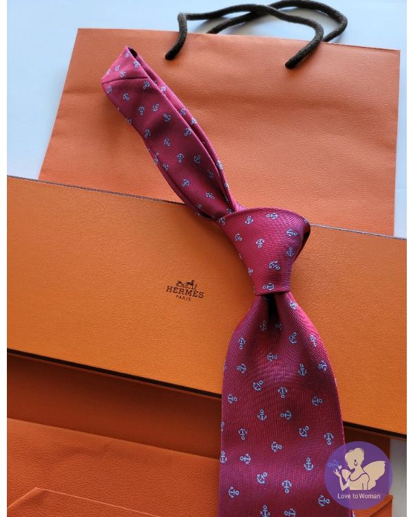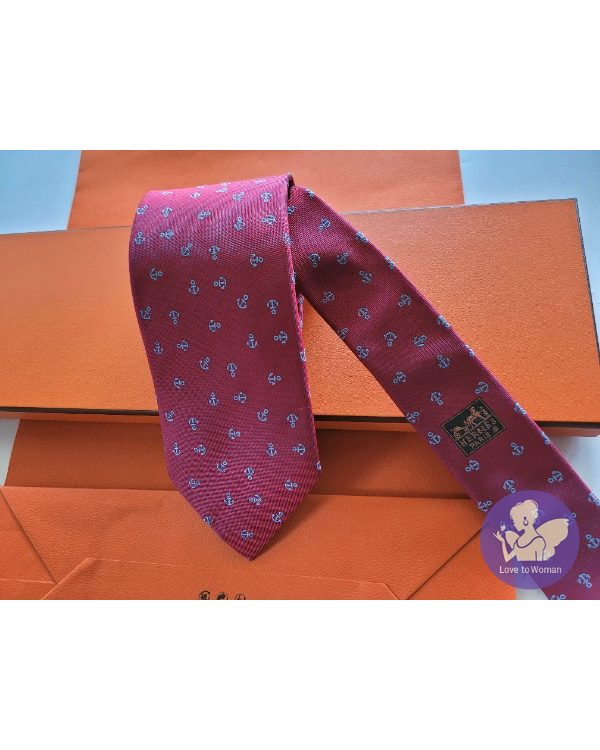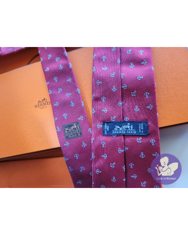 ~Hermes 附原廠盒.提袋 極新極美 船錨圖案領帶