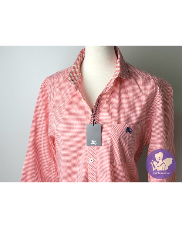~BURBERRY 全新有吊牌 紅白格紋七分袖襯衫