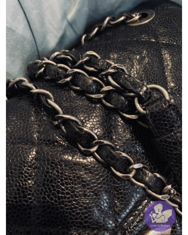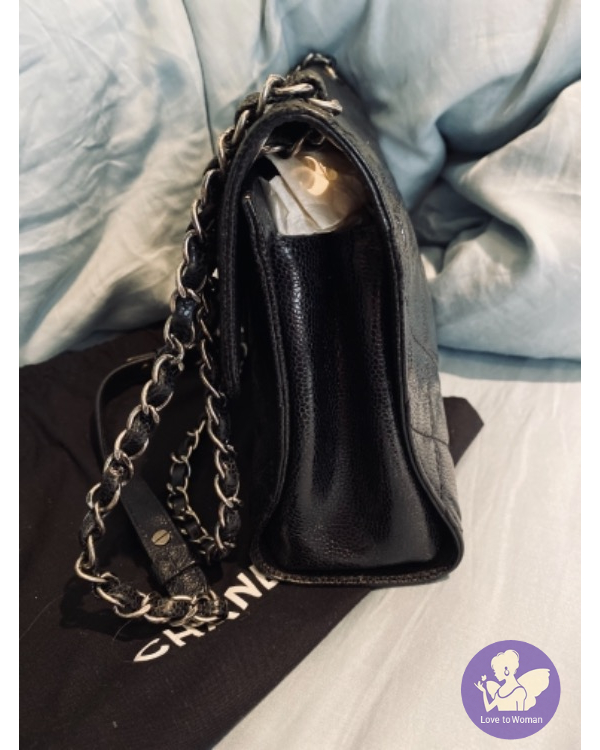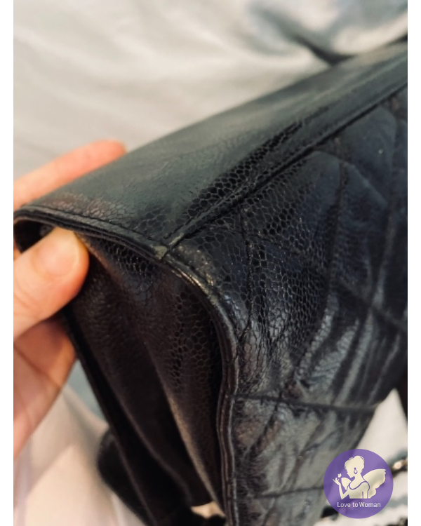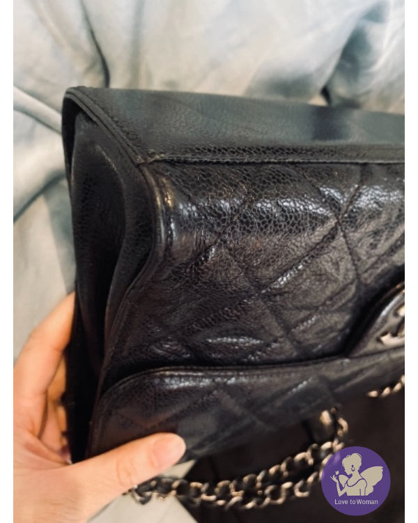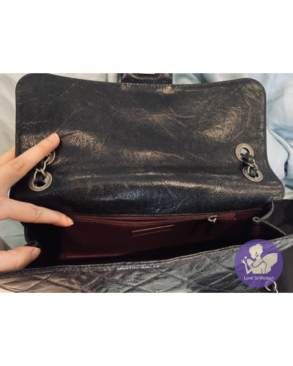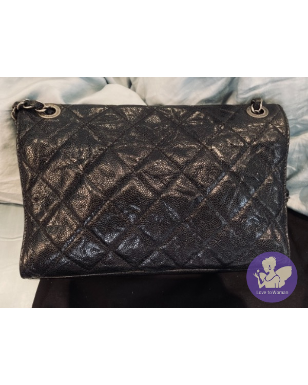 Chanel 油蠟牛皮復古仿舊銀扣單蓋包26cm