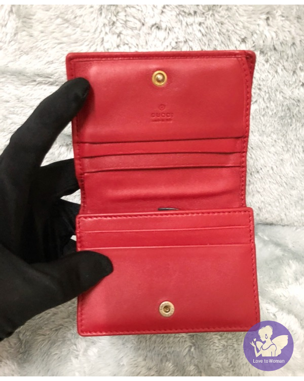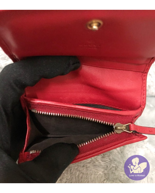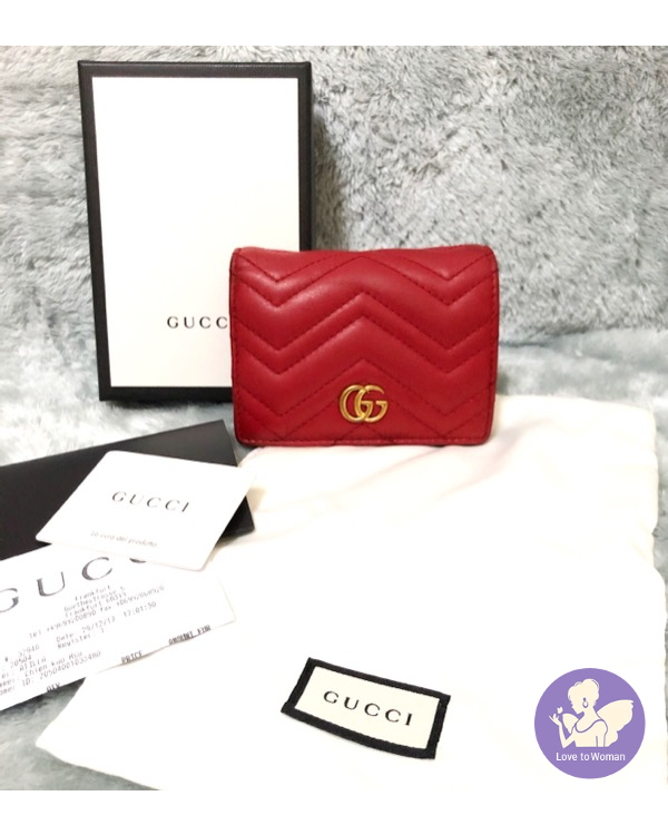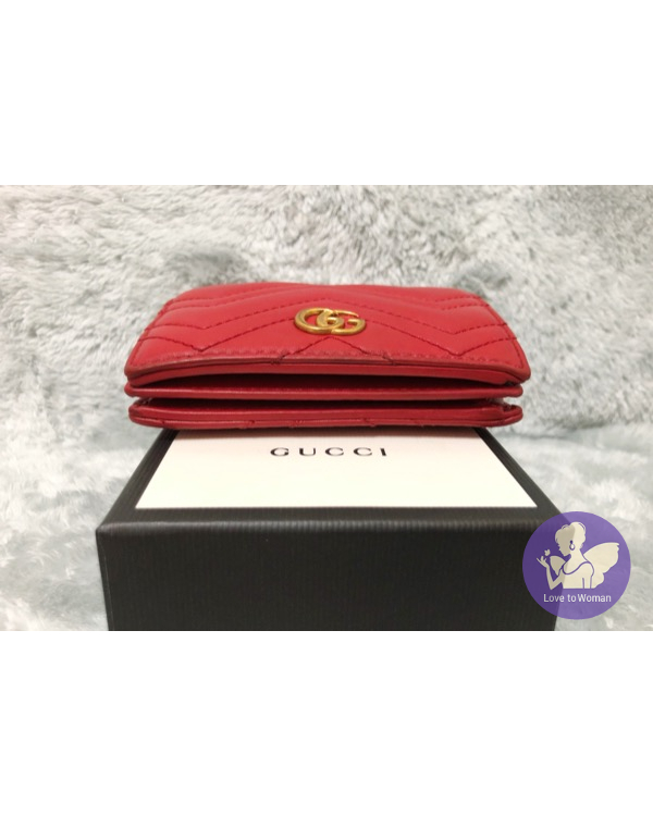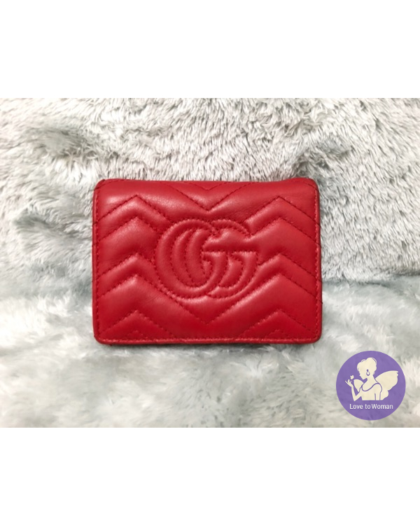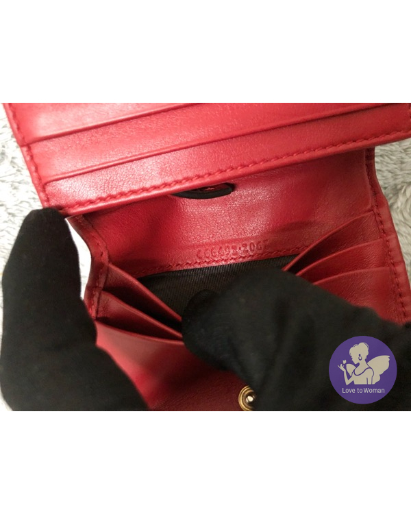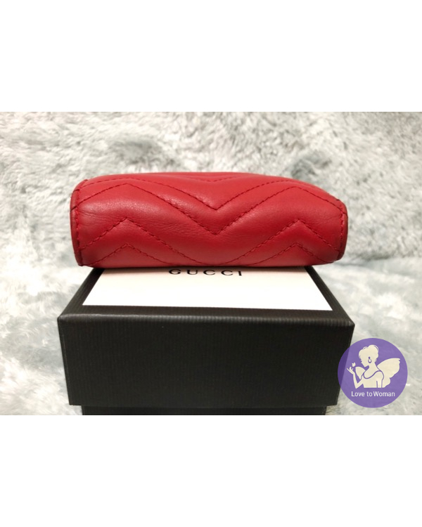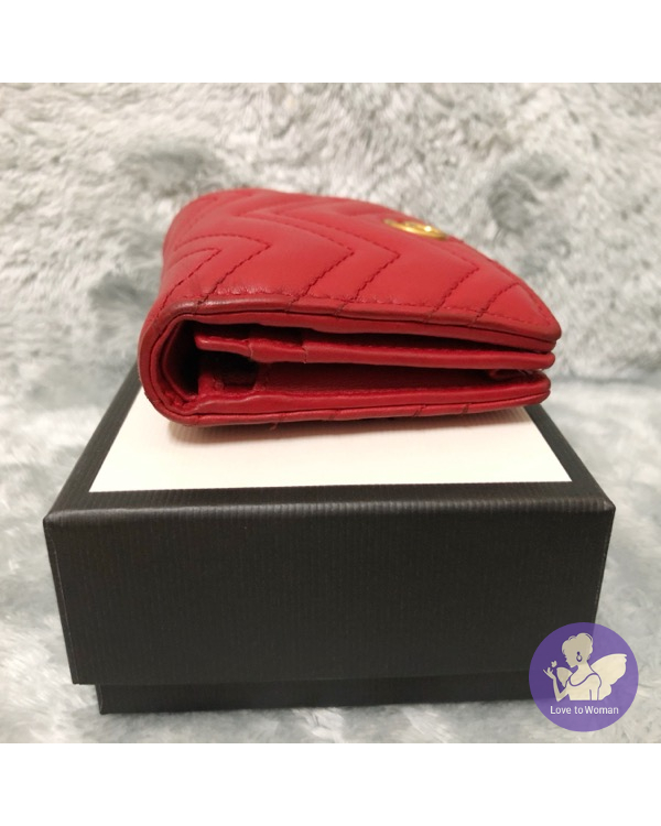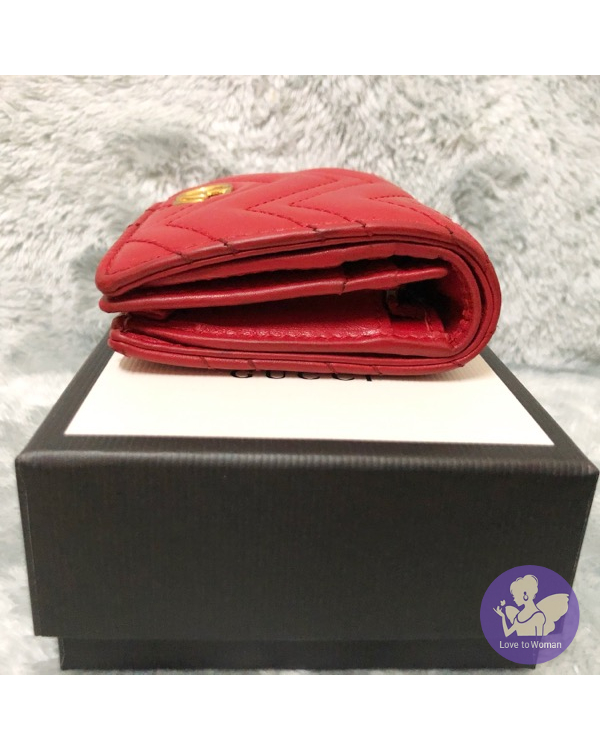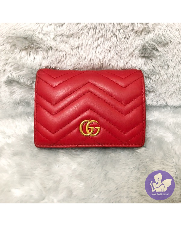 ​Gucci 古馳 芙蓉紅 紅色 Marmont 系列 山形紋 牛皮 兩折 短夾✨