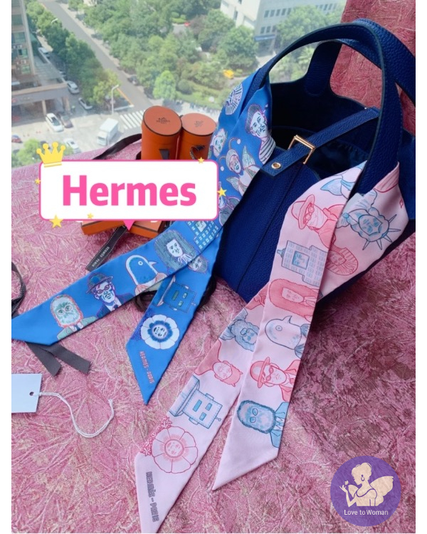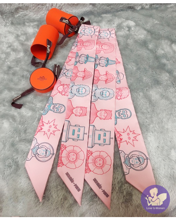 Hermès 愛馬仕 Twilly 絲巾2021秋冬新款 Dress Code twilly 機器人 人像 淺粉色Rose Pâle/藍色Bleu/紅色Rouge一對 兩條 全新✨