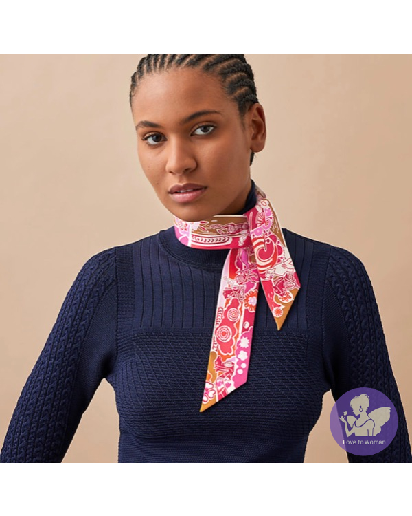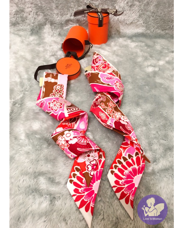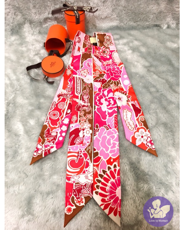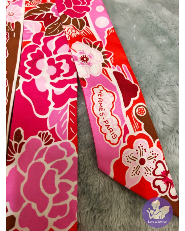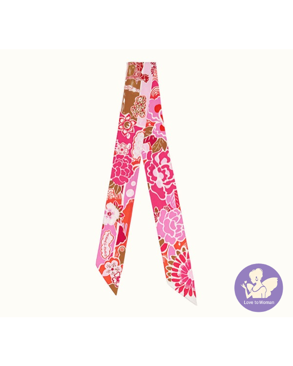 首頁 精品手錶 Hermès 愛馬仕 Twilly 絲巾2021秋冬新款Bingata twilly 紅型染 日式風 花卉 紫紅色Fuchsia/珊瑚色Corail/棕色Brun兩條 一對全新✨
