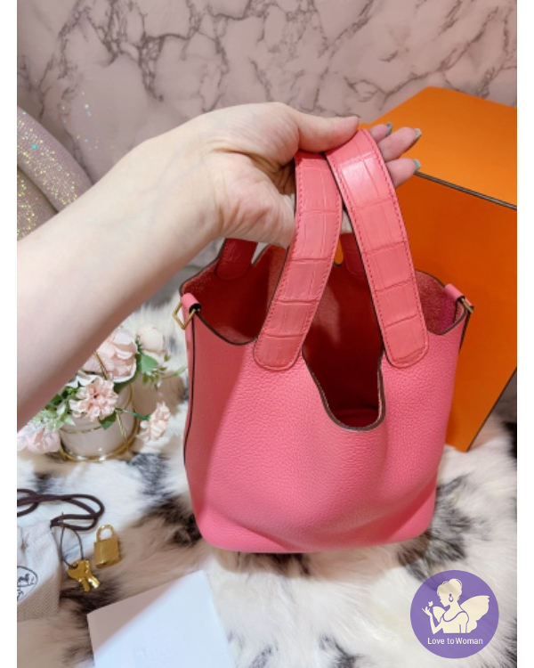 產品信息 ????寵編A000243???? Hermès picotin 18 8W 拼A5 touch鱷魚手把金釦 Y刻。#超甜直購145000含運 超級減齡仙女色 配金釦 ‼️18黃金尺寸 這顆實品真的超級美????????也超好搭‼️ 菜籃子真的是必備 Touch少之又少喔‼️ 整體包況9新以上 非常新 四角無磨 內裡乾淨 鎖頭的膠膜也都還在喔 包身也沒有軟塌塌 ❤️ 附 塵套 說明書 鎖頭 鑰書 購證影本