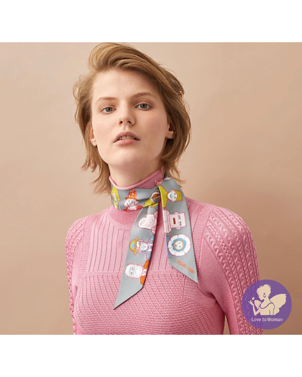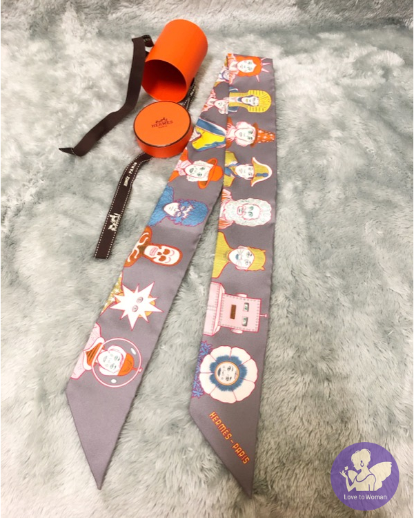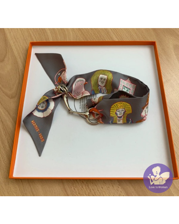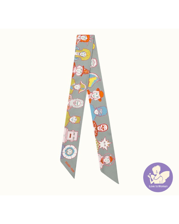 Hermès 愛馬仕 Twilly 絲巾2021秋冬新款 Dress Code twilly 機器人 人像 灰色Gris/亮黃色Jaune Vif/橘色Orange ㄧ條 全新✨