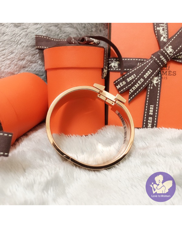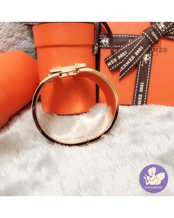 ​Hermès 愛馬仕 經典款 2021新款 Clic Clac H Son du H bracelet 編織感 寬版 H琺瑯 玫瑰金Sablé Soie手環 尺寸PM 全新✨