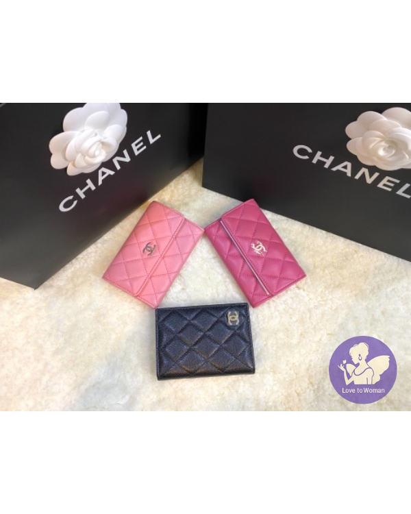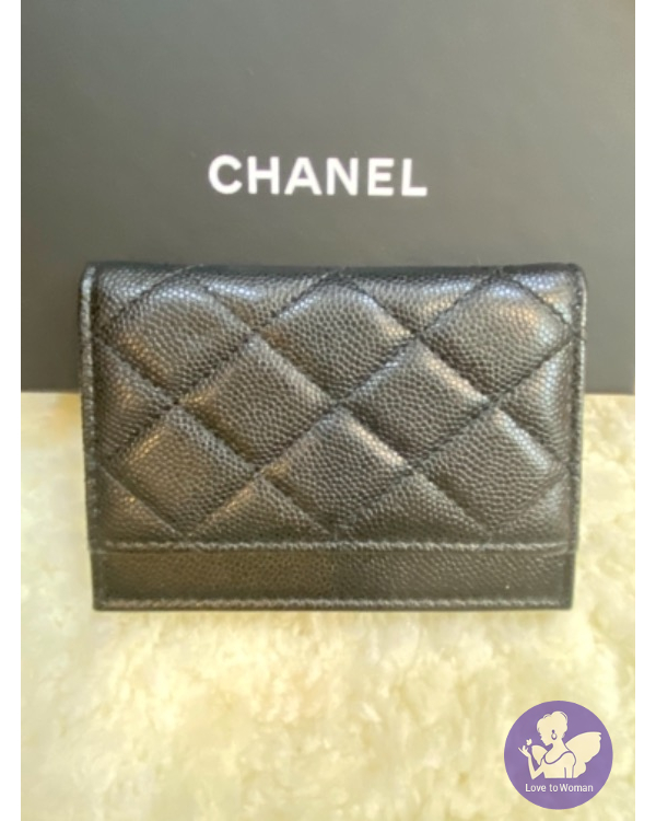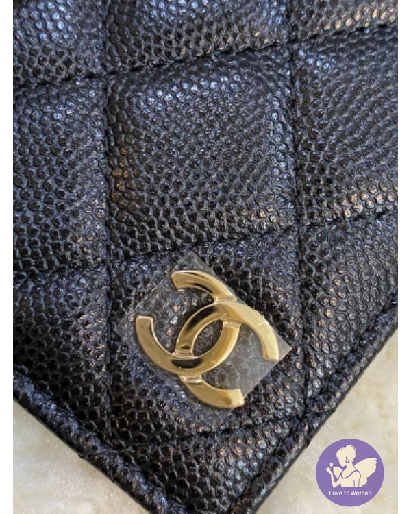 Chanel 黑金荔枝皮金釦cc logo卡夾 證件夾 名片夾 悠遊卡夾