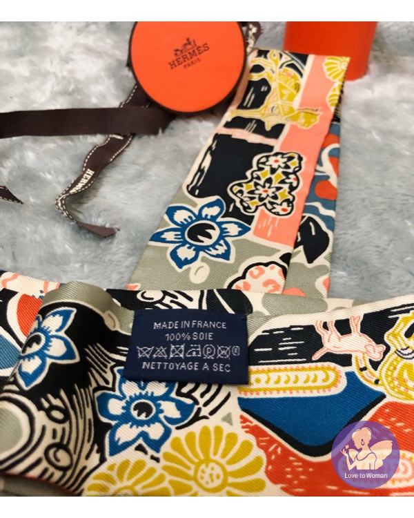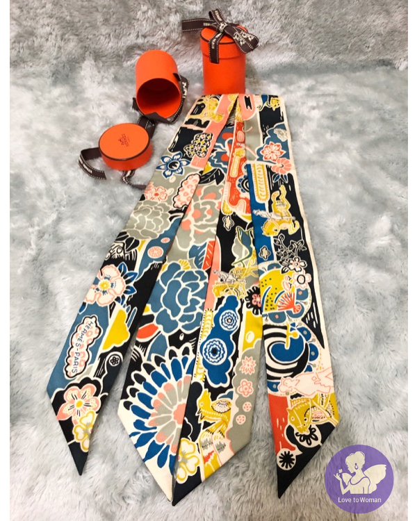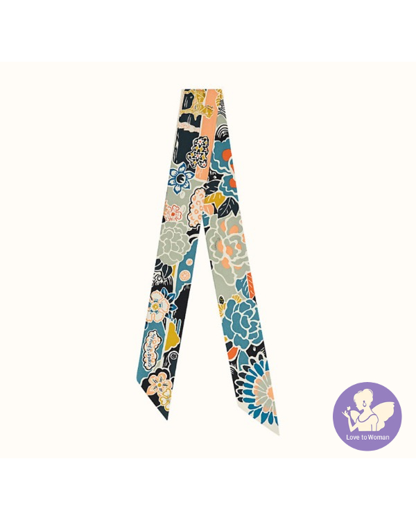 Hermès 愛馬仕 Twilly 絲巾2021秋冬新款Bingata twilly 紅型染 日式風 花卉Vert Noir/Saumon/Moutarde兩條 一對全新✨