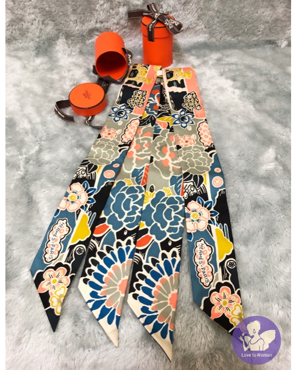 首頁 精品手錶 Hermès 愛馬仕 Twilly 絲巾2021秋冬新款Bingata twilly 紅型染 日式風 花卉Vert Noir/Saumon/Moutarde兩條 一對全新✨