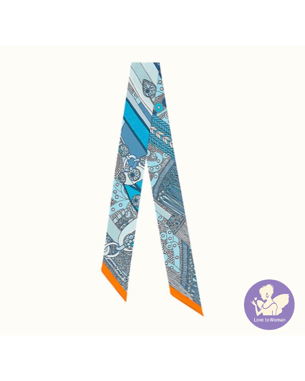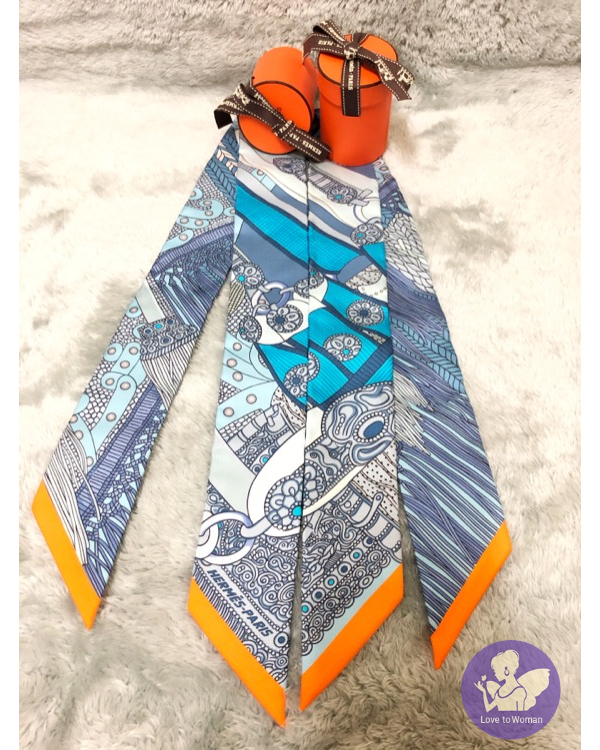 Hermès 愛馬仕 Twilly 絲巾2021秋冬新款 Selle de Dignitaire twilly高貴馬鞍 藍色Bleu/藍灰色Gris Bleuté/橘色Orangeㄧ對 兩條 全新✨