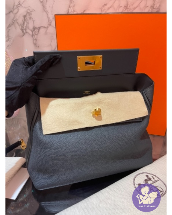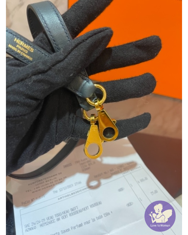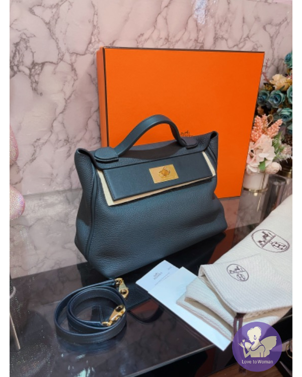 產品信息 寵編A000243 ❤️ Hermès 2424 Togo vert rousseau 盧梭綠 金釦 D 2424 29背起來真的很有型 容量也夠大 休閒搭也非常好看 要正試場合也可以 這個顏色超有質感 綠中帶灰 整體包況9成新up‼️四角無磨 內裡乾淨 釦頭的膠膜都還在 附 盒 塵套 購證 官網聯結在留言第一處????