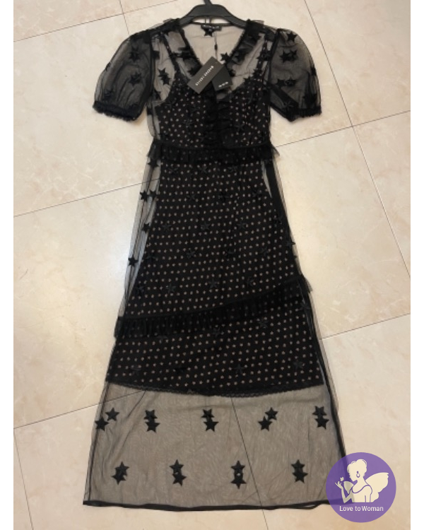 全新MARKUS LUPFER星星刺繡雪紡洋裝