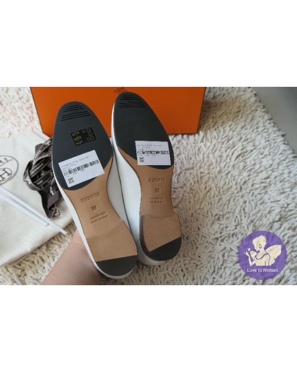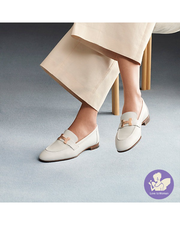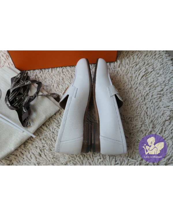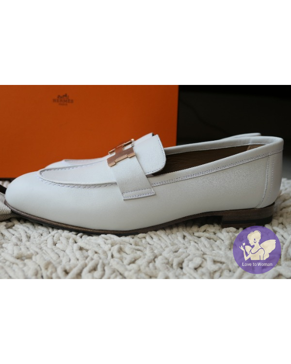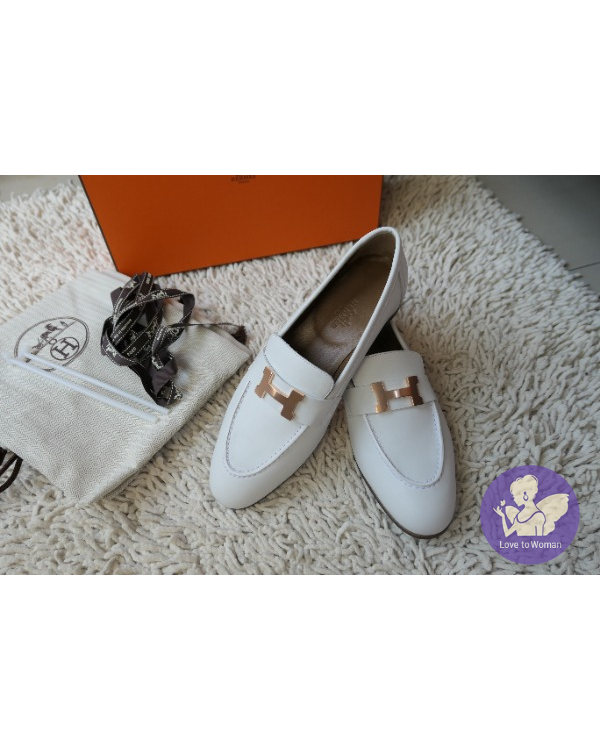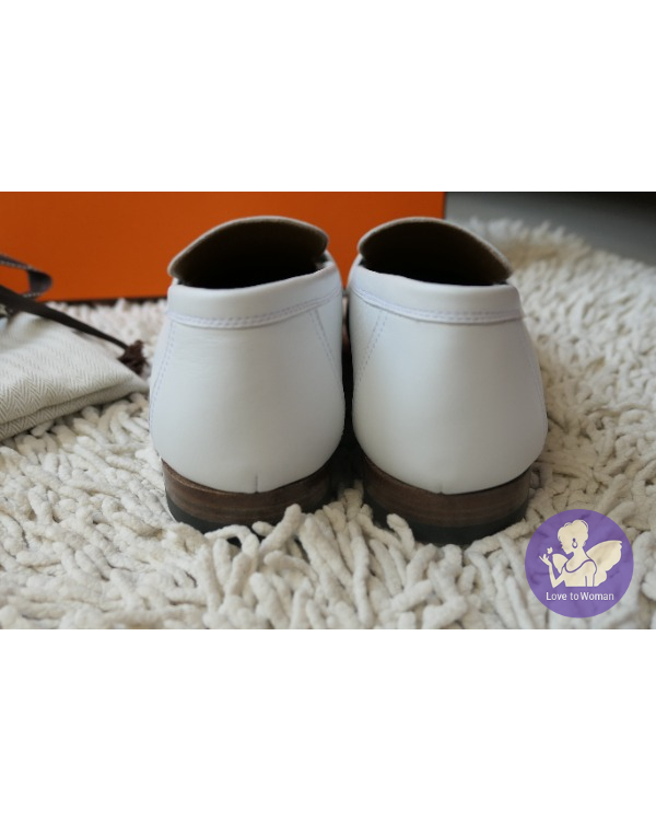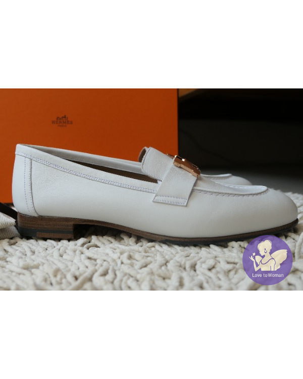 全新Hermès Paris Loafer 白X玫瑰金扣 樂福鞋 尺寸:36