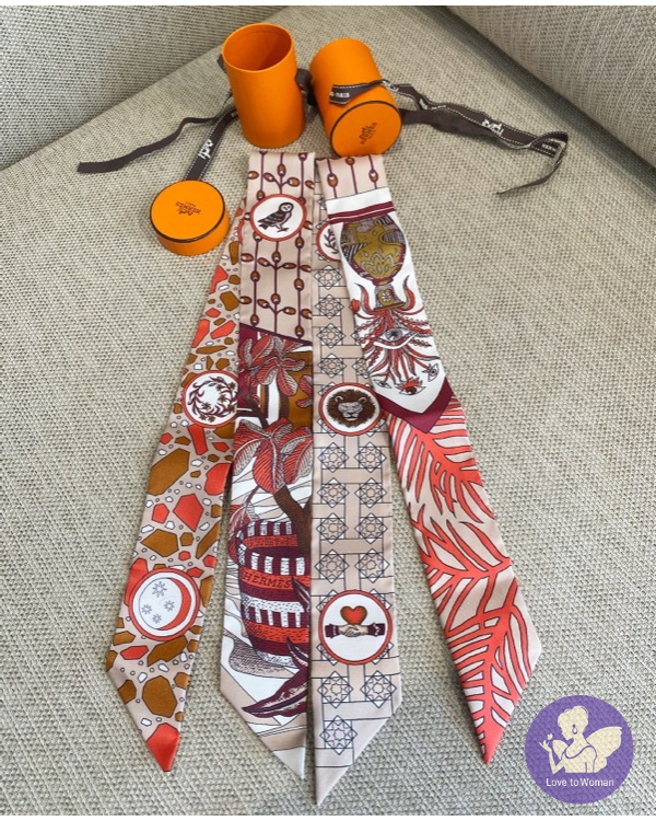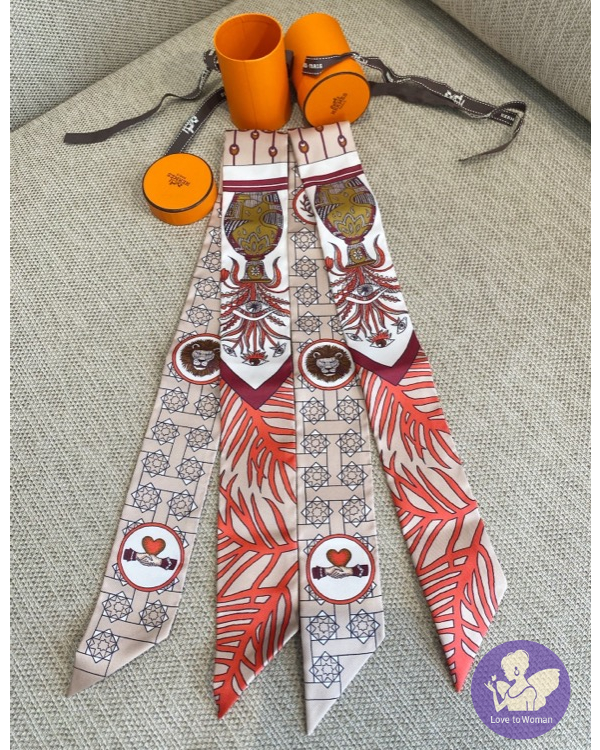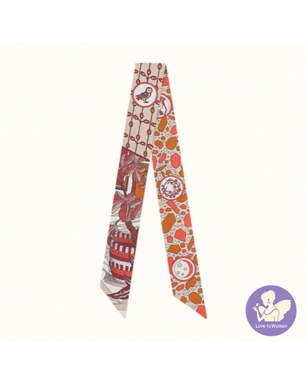 Hermes 愛馬仕 2021新款 女騎士之舞Twilly La Danse des Amazones 米色Beige/珊瑚色Corail/棕色Brun 絲巾 全新 ✨