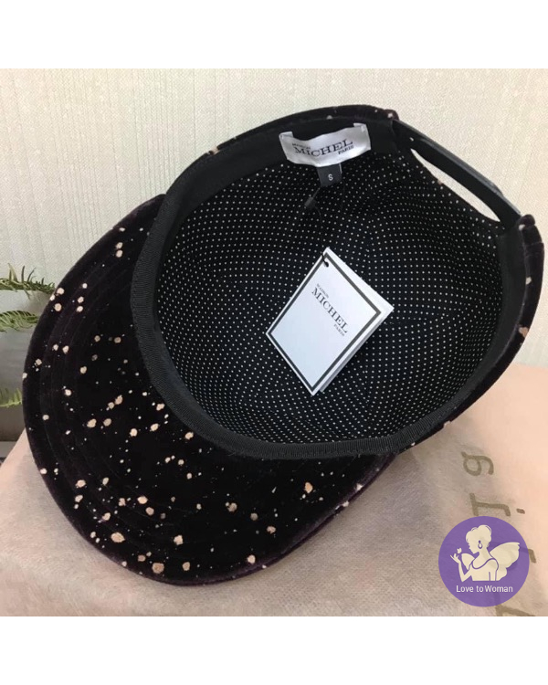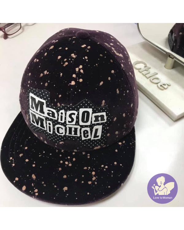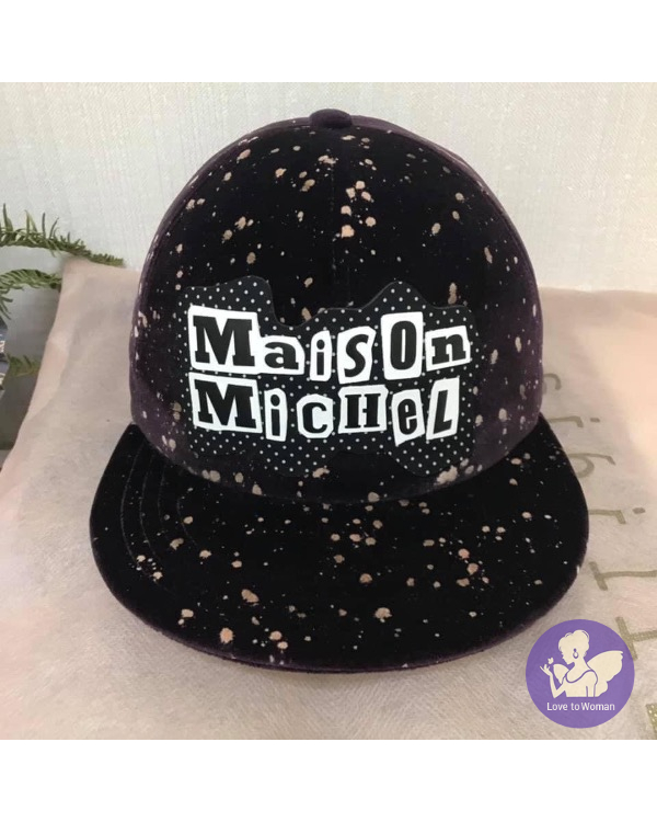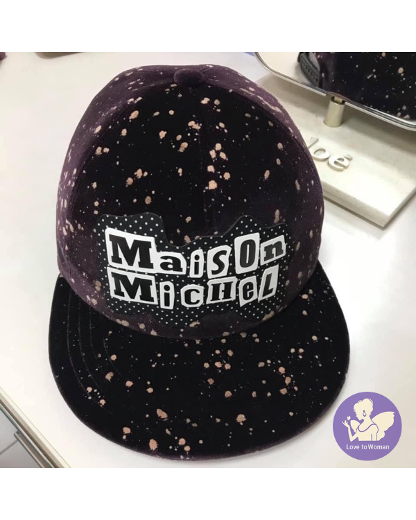 首頁 精品手錶 全新MAISON MICHEL 精緻絲絨Logo拼貼棒球帽