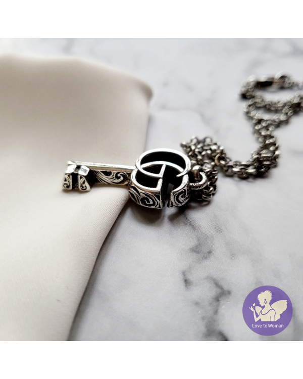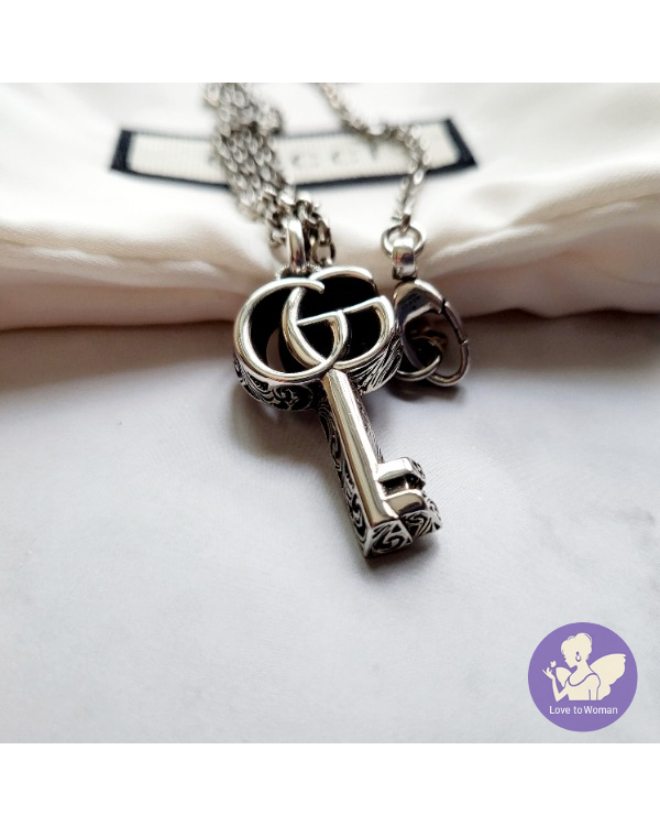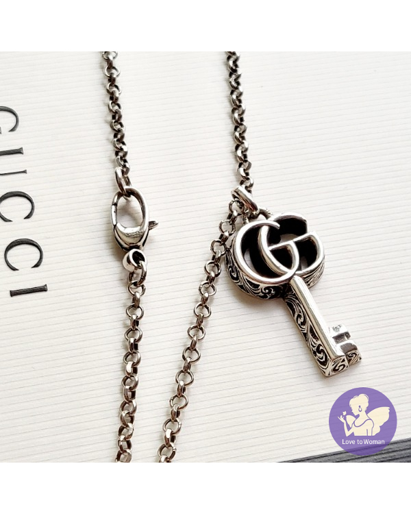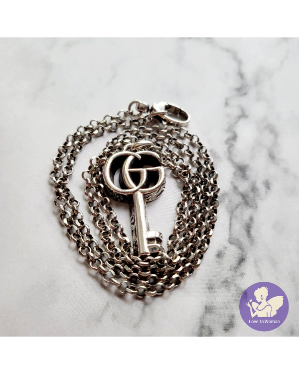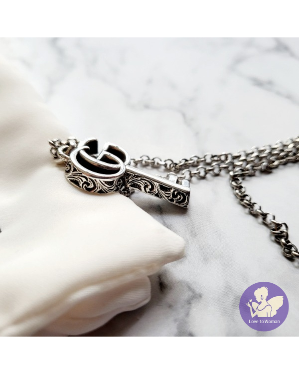 產品信息 ✔️寵愛認證A012456 ❤️GUCCI雙G鑰匙項鍊 這款男女皆可戴,去年專櫃購入整套鑰匙系列飾品,項鍊購價九千多 ????割愛價:$7200,近全新買來僅試戴 ????商品材質:925純銀 ????商品附件:原廠盒/飾品袋 ????商品(官網)說明:這款純銀項鍊採用做舊效果,巧妙融入別緻的鑰匙設計,鑰匙頂部飾有鮮明的品牌標識雙G元素。Gucci銀飾系列經過精心設計和專業製作,通過微妙細節致敬品牌傳承,呈現出一系列時尚和經典單品。 ????做舊效果純銀 ????雙G鑰匙吊墜 ????阿拉伯式花紋刻花 ????搭扣 ????50釐米長 ????吊墜:16.4毫米 x 28.8毫米 ????意大利創作 ????超商保值寄送$90 網路配戴圖參考,不妥請告知,3Q