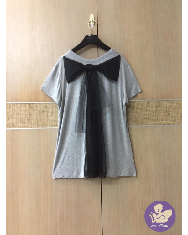 Red Valentino灰色背後紗質蝴蝶結中間鏤空造型上衣 購於專櫃購價約$12800穿過幾次尺寸L長74胸53肩39