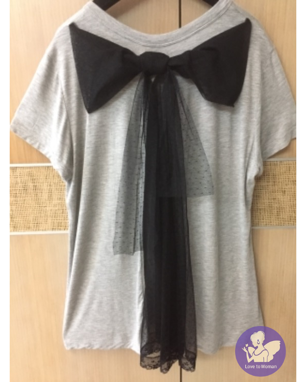 前面是簡單微a字型t恤背後紗質蝴蝶結中間鏤空上衣很有造型浪漫唯美公主風裡面可搭配一件小可愛就可以了下身隨便搭配褲子或裙裝都很好看喔 標籤送洗時被洗店弄掉了找不到 出清價$2380含運售出不退感謝辛苦管理員謝謝美女們推喔