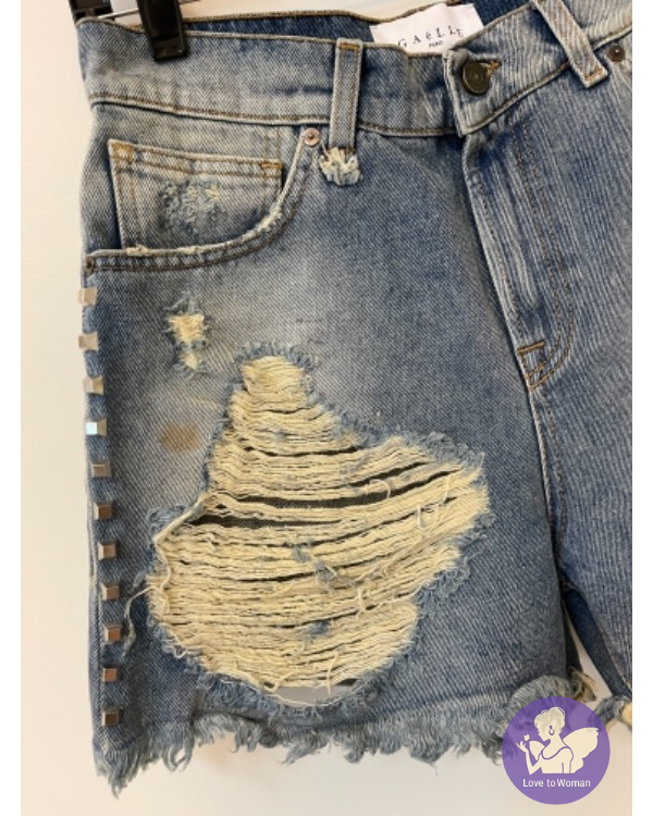 全新法國街頭潮牌 GaëlleParis 側邊卯釘刷破牛仔短褲