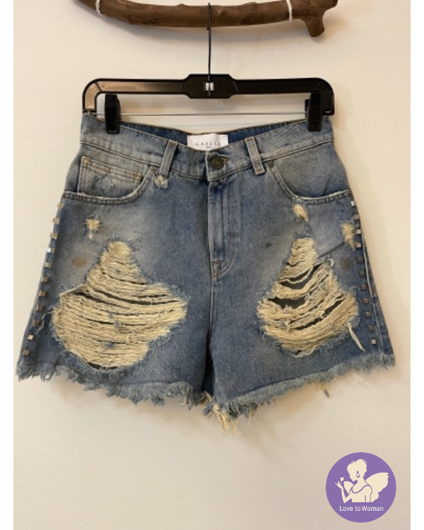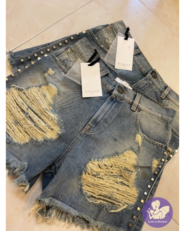 首頁 精品服飾 全新法國街頭潮牌 GaëlleParis 側邊卯釘刷破牛仔短褲
