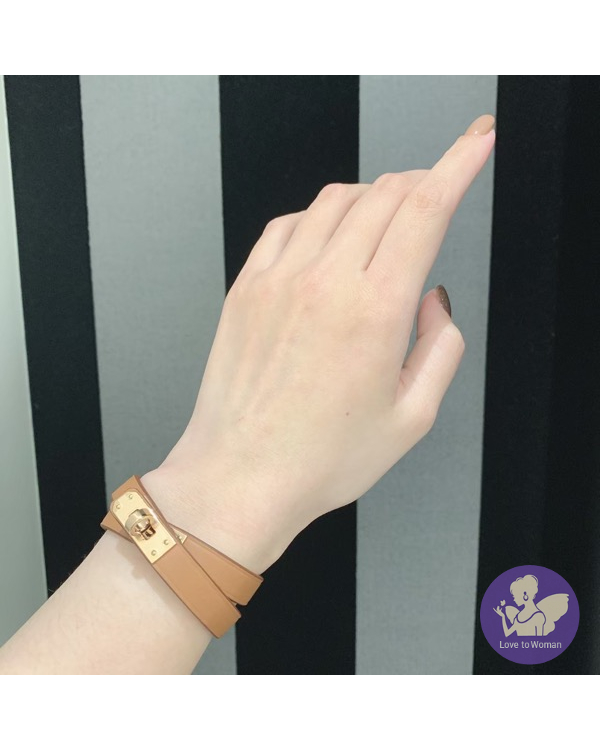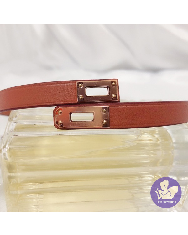 Swift小牛皮雙圈手鐲,搭配鍍玫瑰金迷你Kelly鎖扣。
